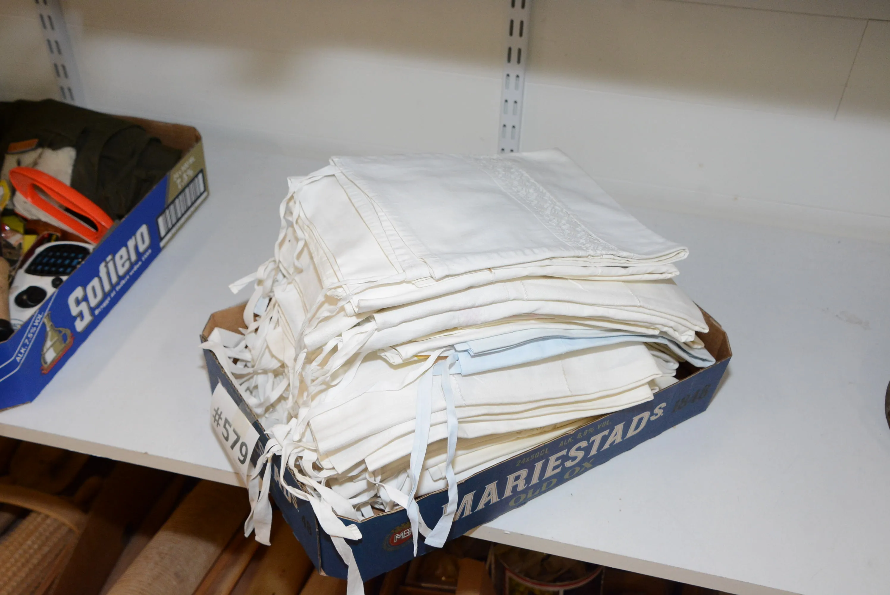 579. Örngott med spets-/vitbroderier parti