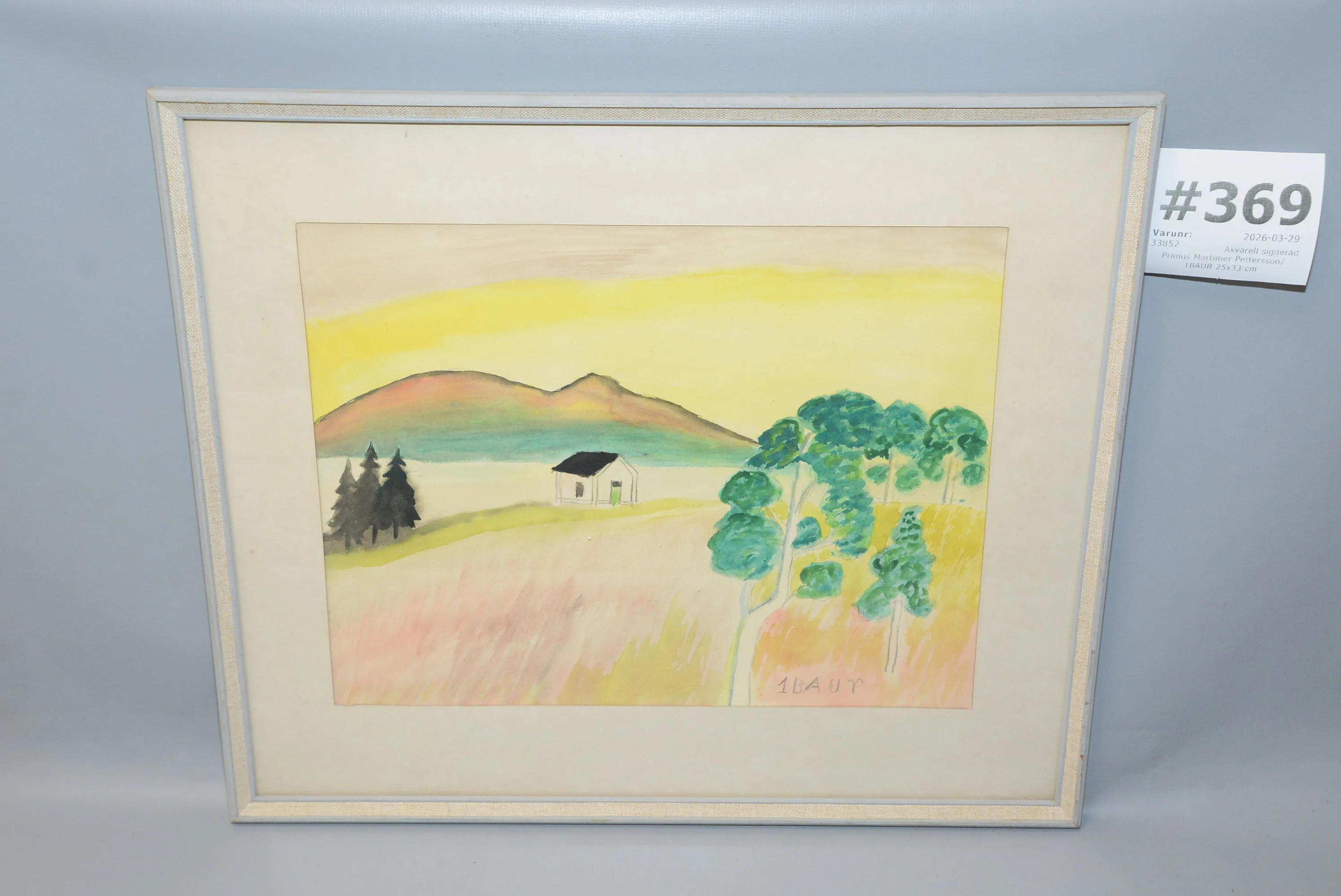 369. Akvarell signerad Primus Mortimer Pettersson/ 1BAUr 25x33 cm
