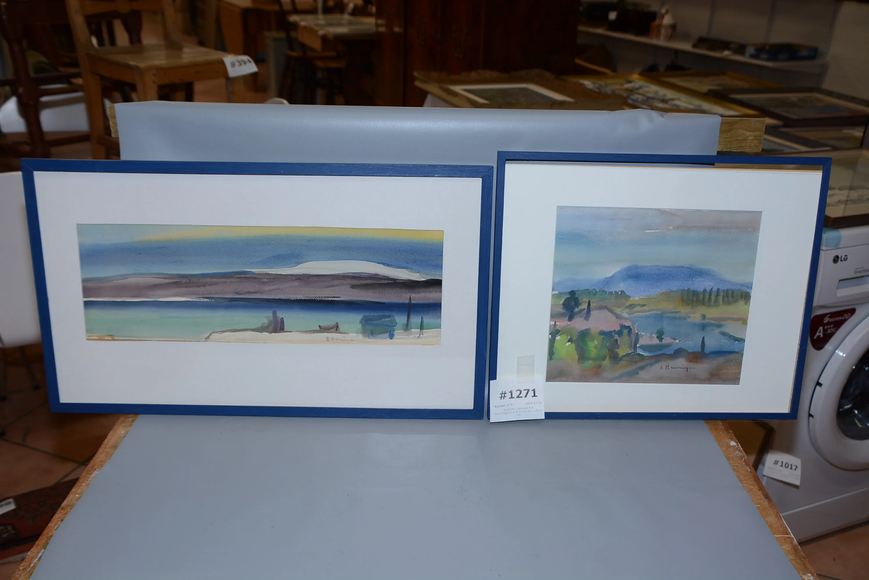 1271. Akvareller signerad Eric Hemmingsson 2 st 17x50 cm + 25x28 cm