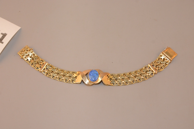 1271. Armband guld 18k, glassten, L: 18 cm, B: 15 mm