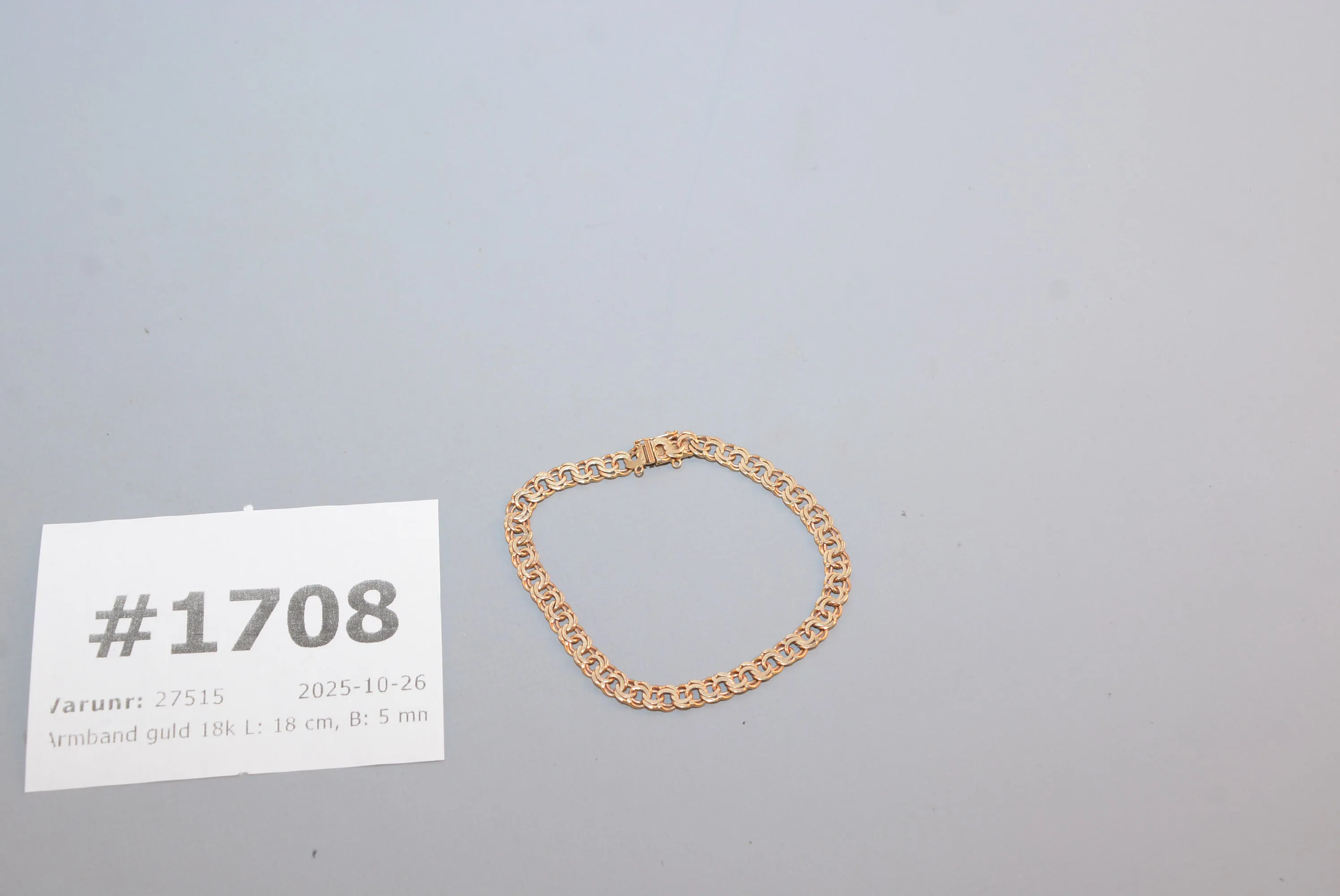 1708. Armband guld 18k L: 18 cm, B: 5 mm