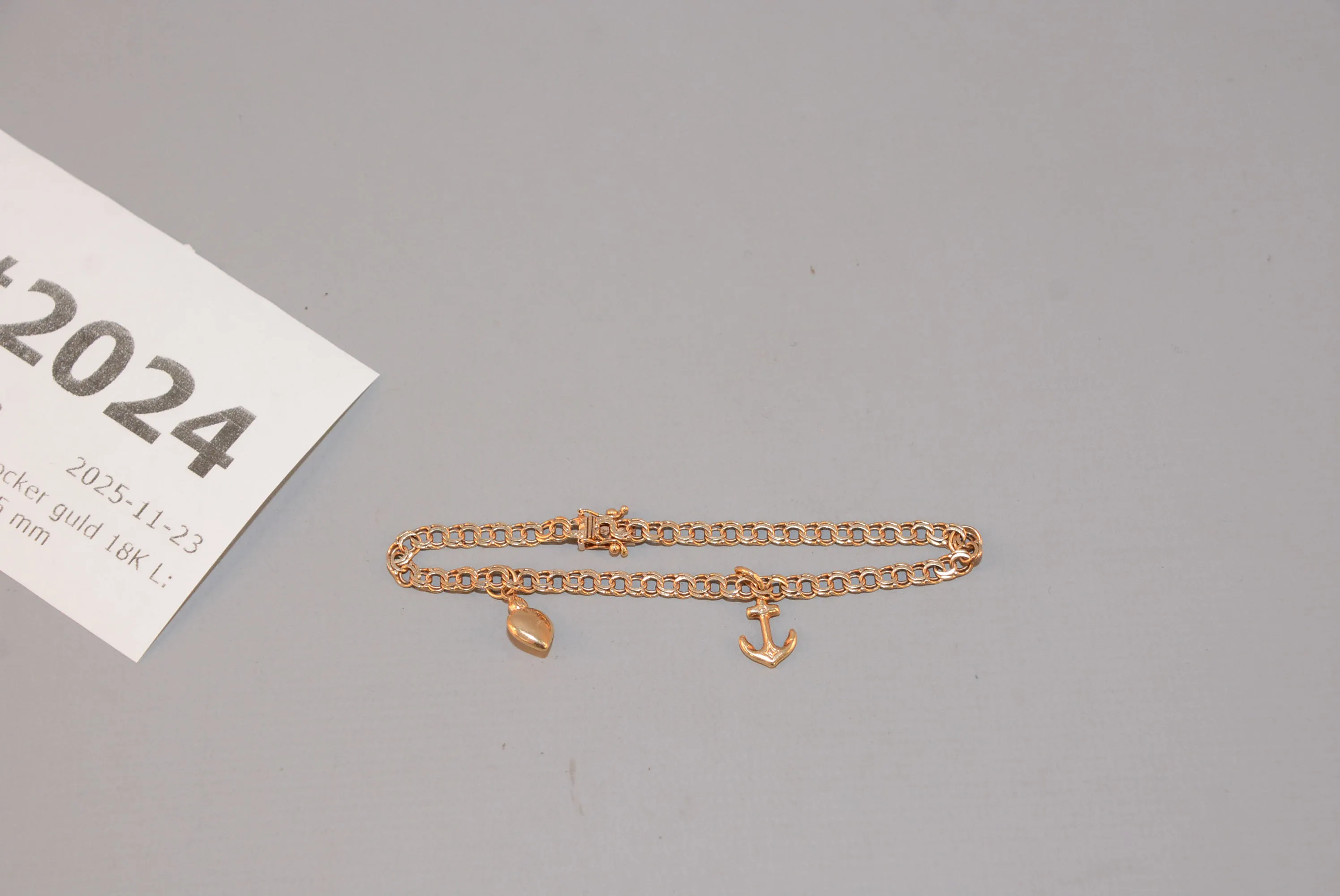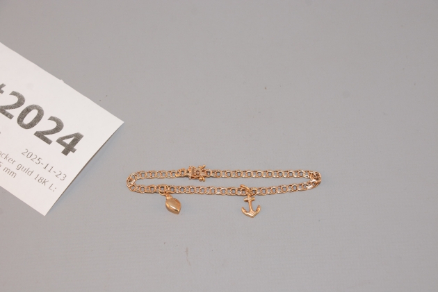 2024. Armband med berlocker guld 18K L: 18 cm, B: 5 mm
