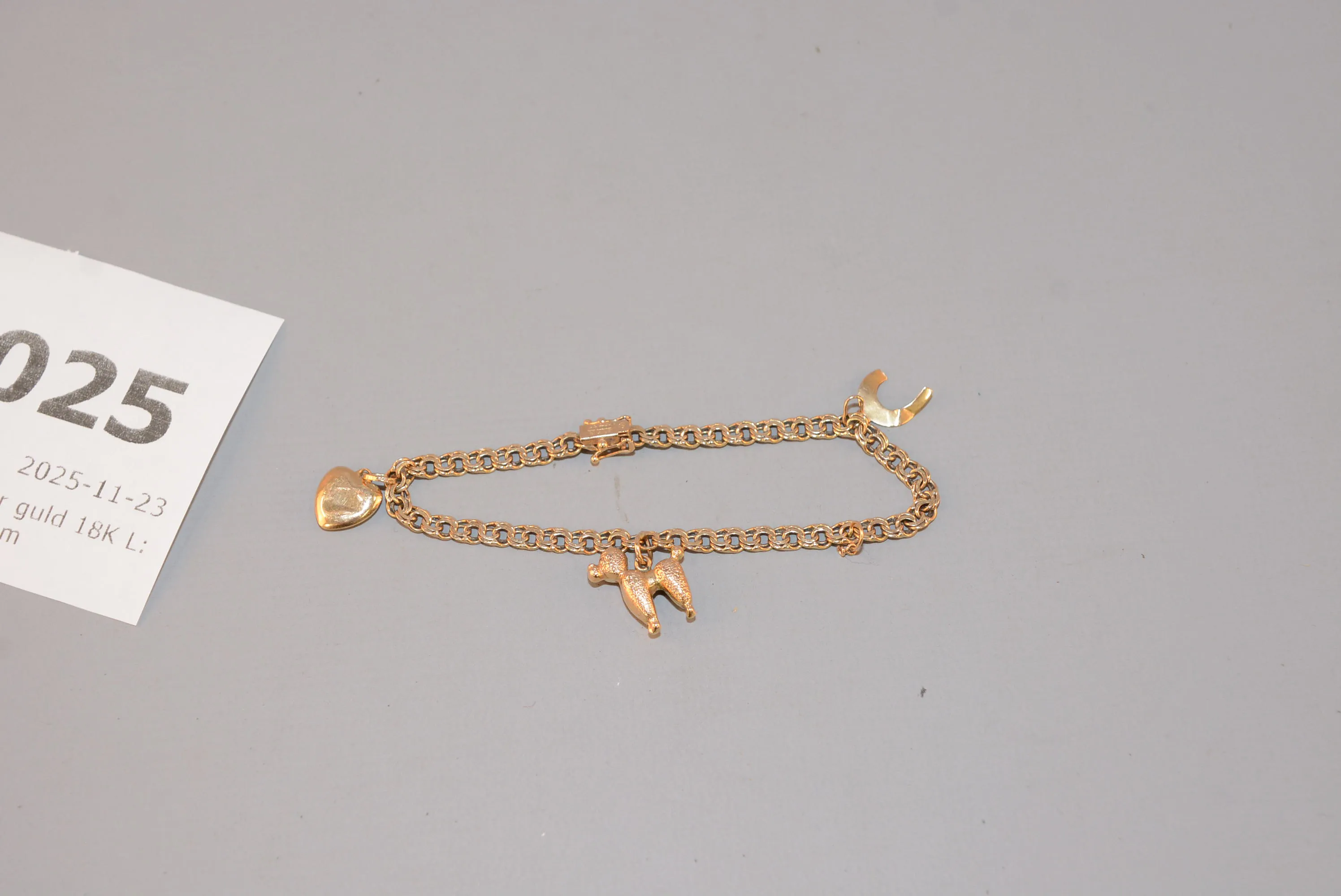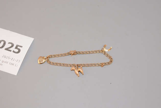 2025. Armband med berlocker guld 18K L: 18 cm, B: 5 mm