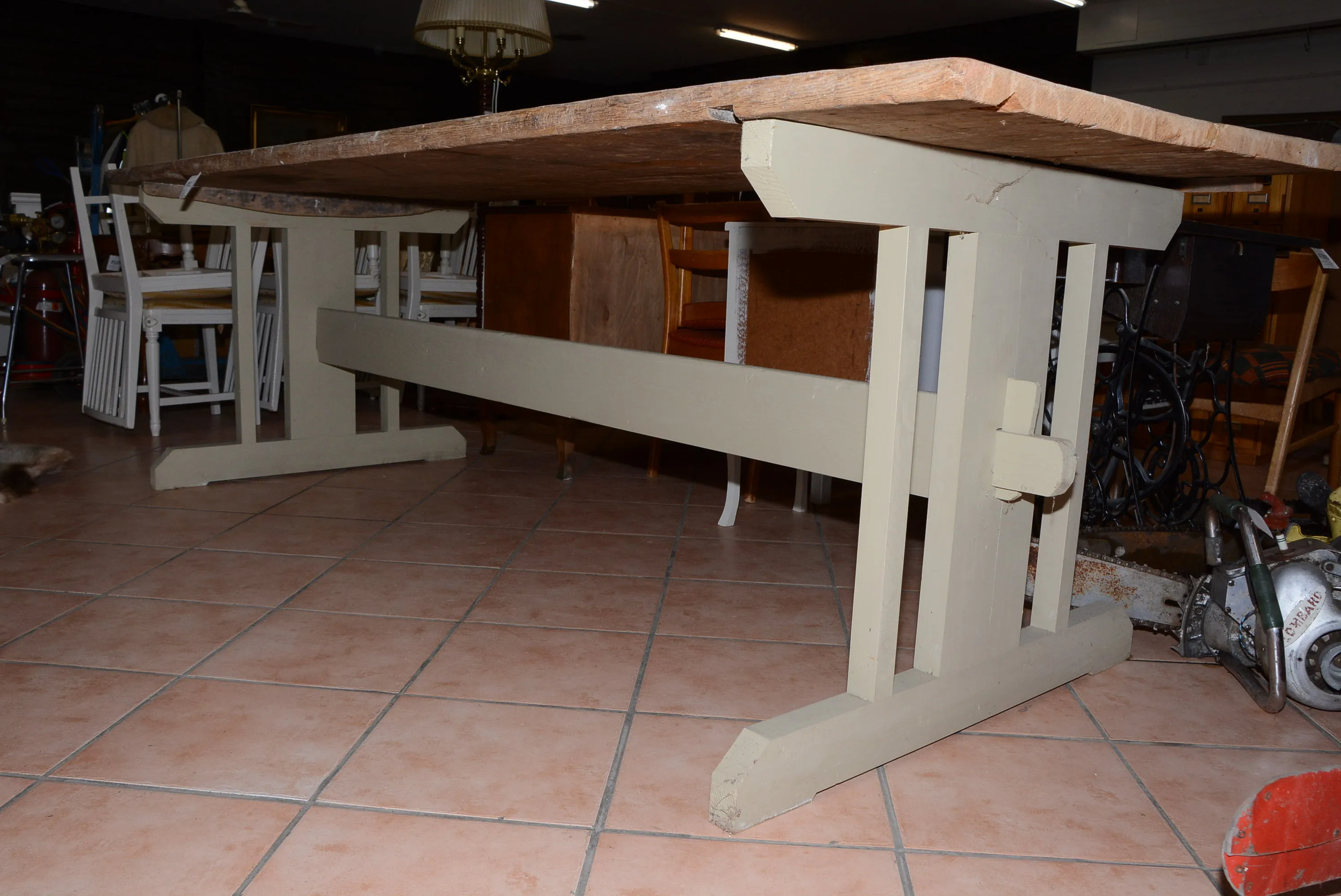1287. Bakbord 2-plank nyare t-bock 265x100 cm, H: 81 cm