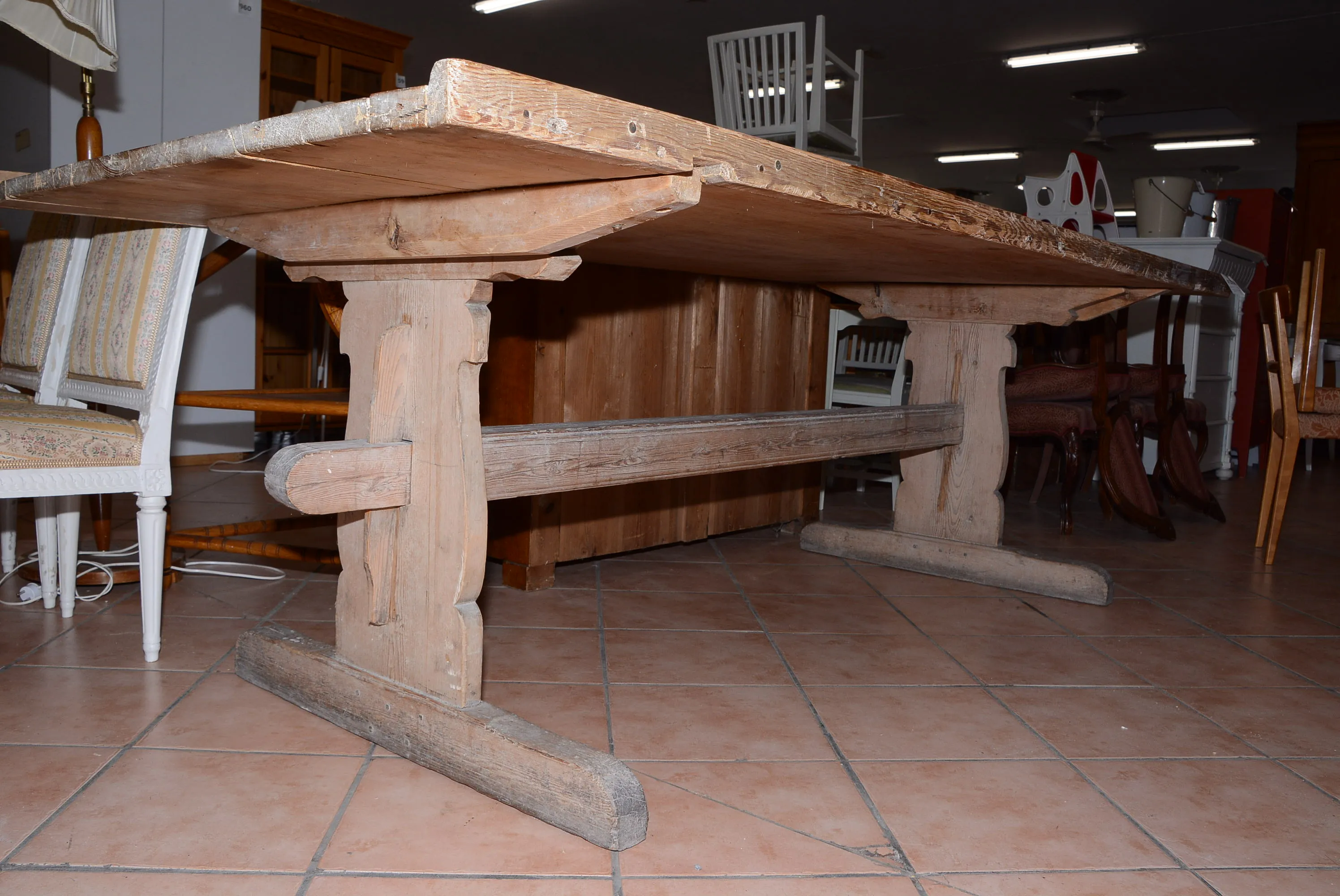 1056. Bakbord med profilerad bock 240x105 cm, H: 79 cm
