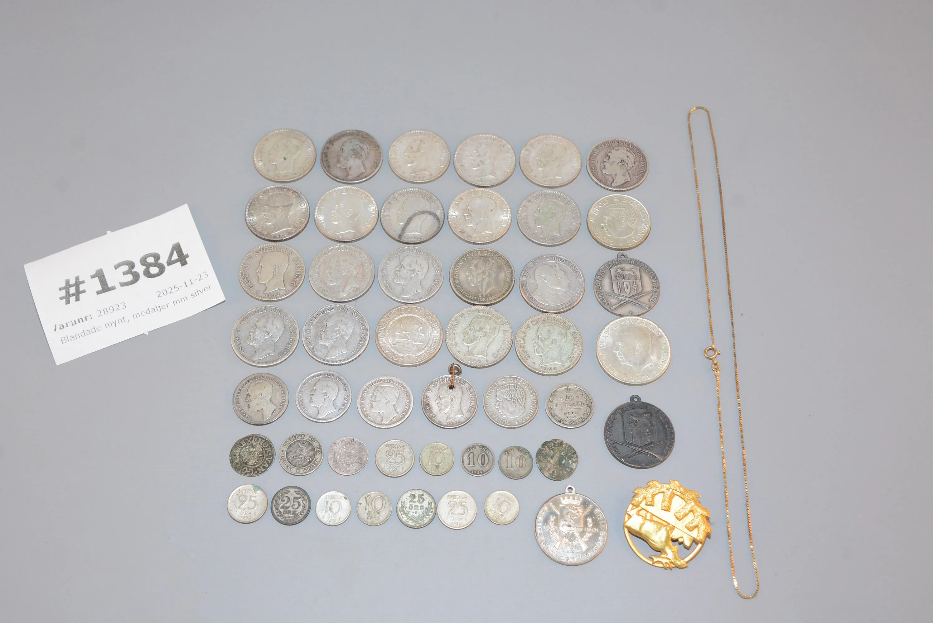 1384. Blandade mynt, medaljer mm silver