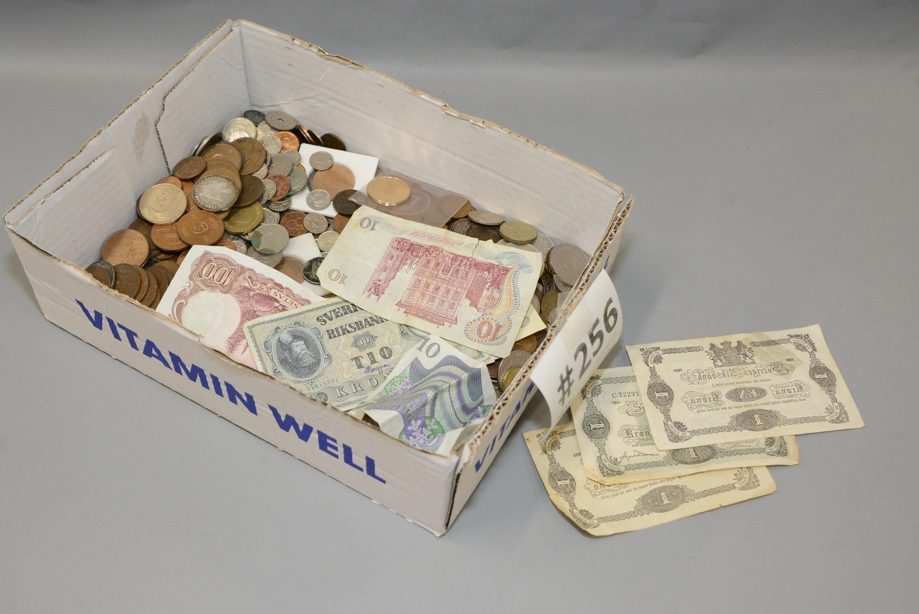 256. Blandade mynt, sedlar