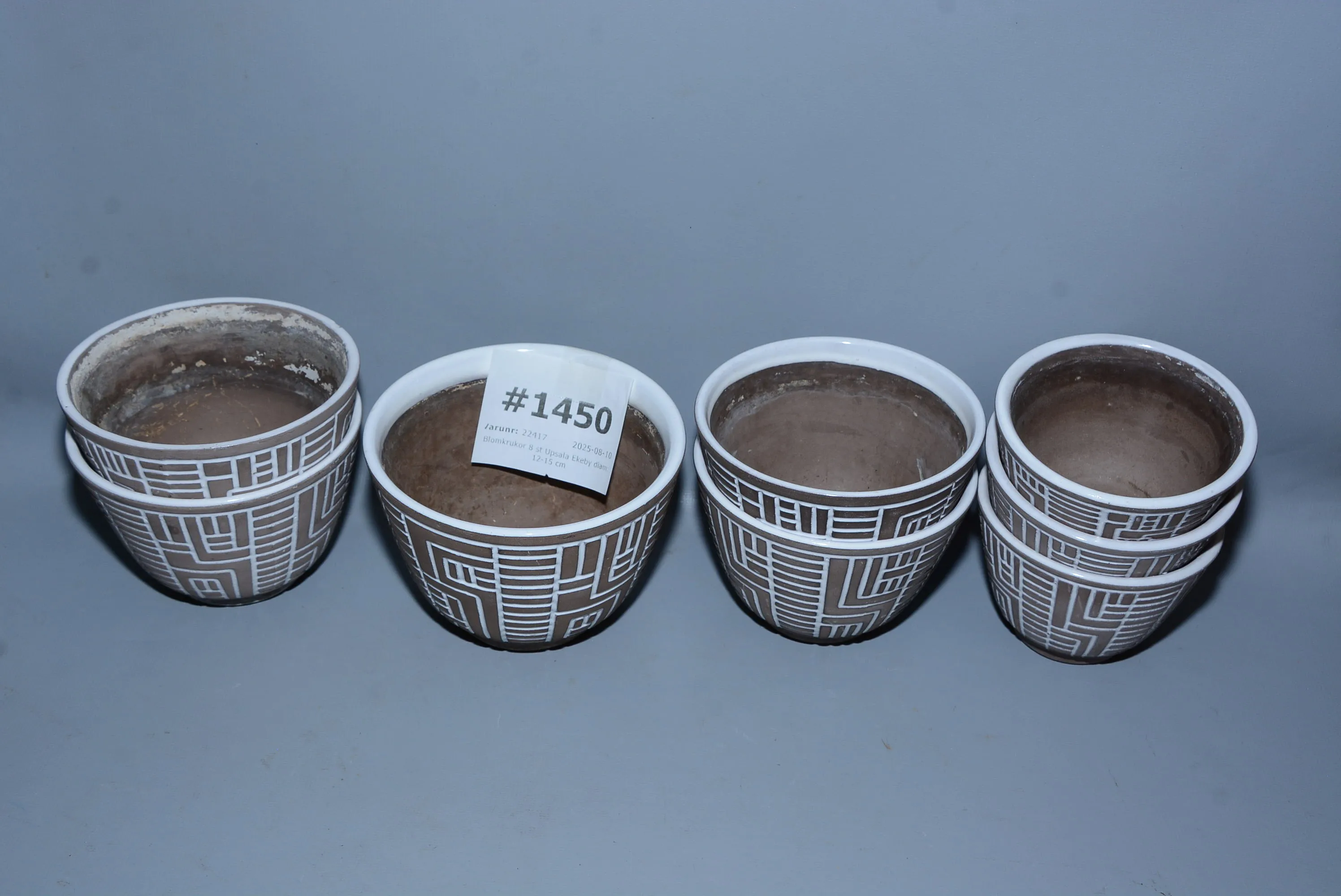 1450. Blomkrukor 8 st Upsala Ekeby diam: 12-15 cm