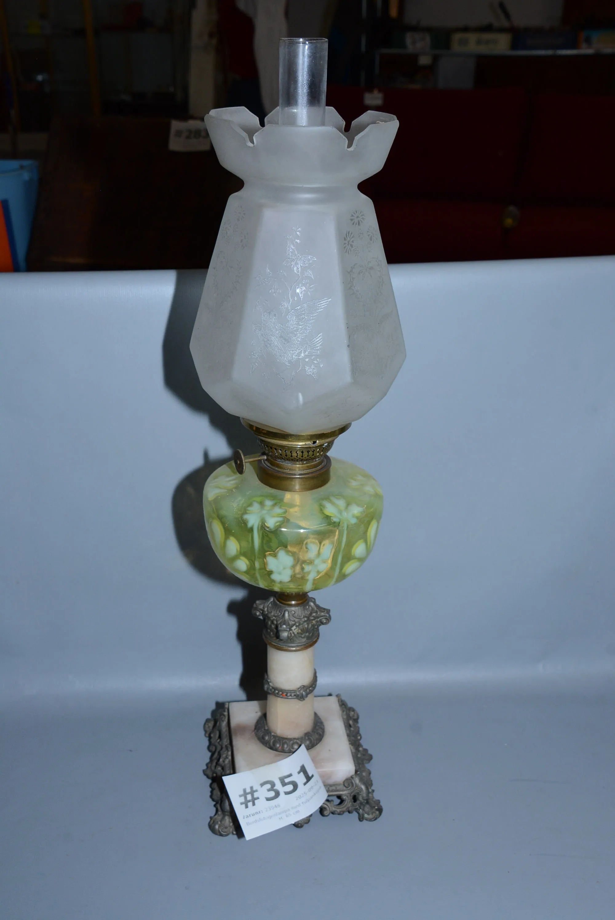 351. Bordsfotogenlampa med tulpankupa H: 65 cm