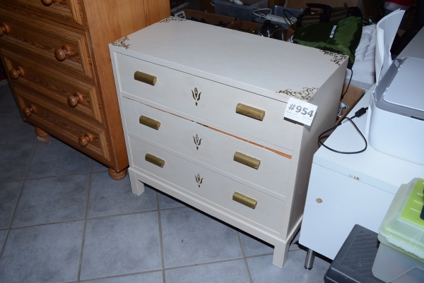954. Byrå 3-lådig 75x35 cm, H: 73 cm