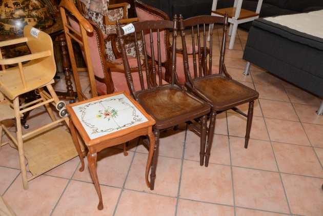 854. Caféstolar 2 st H: 90 cm + dekorbord med kakelskivor 35x35 cm, H: 50 cm