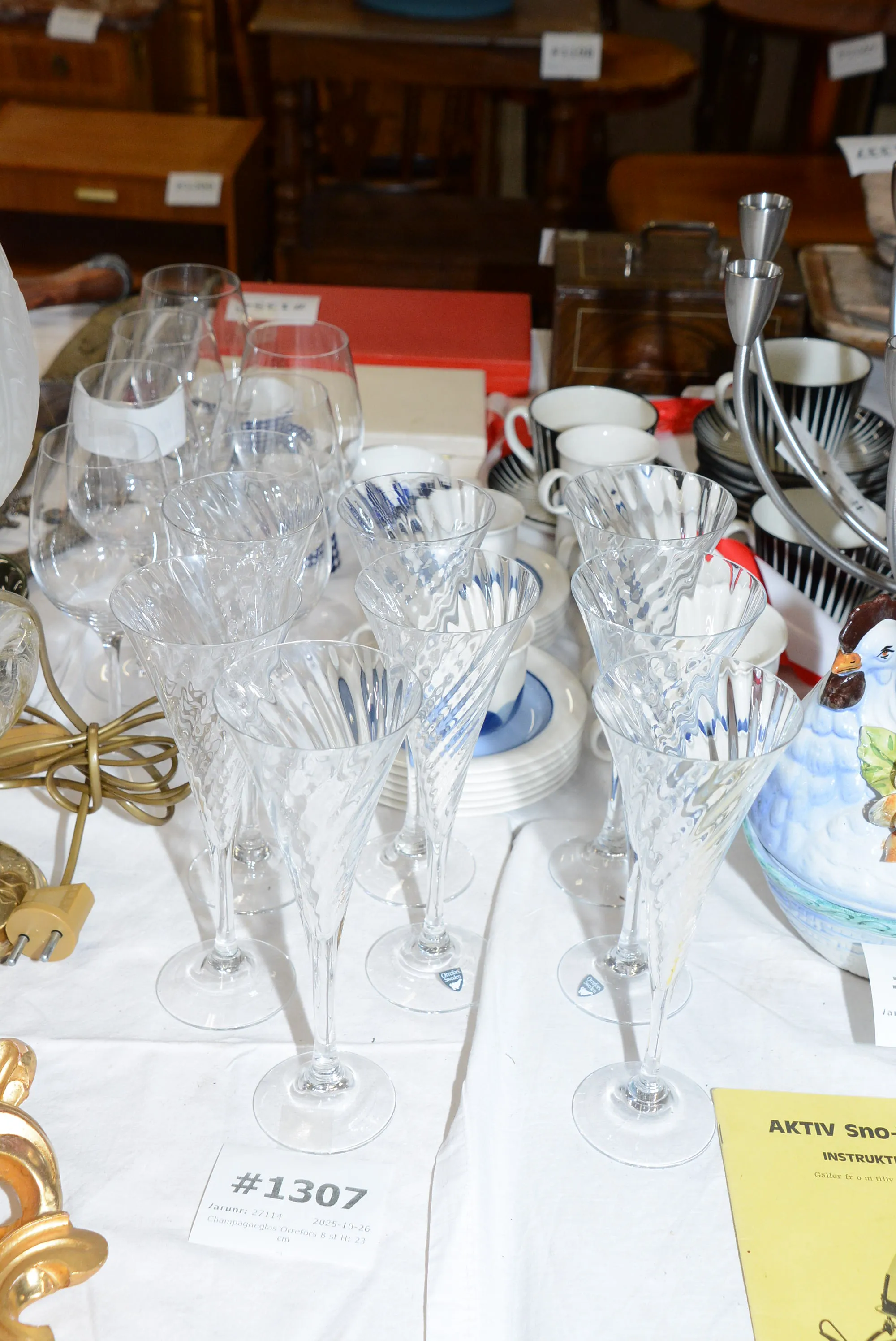 1307. Champagneglas "Helena" Orrefors 8 st H: 23 cm