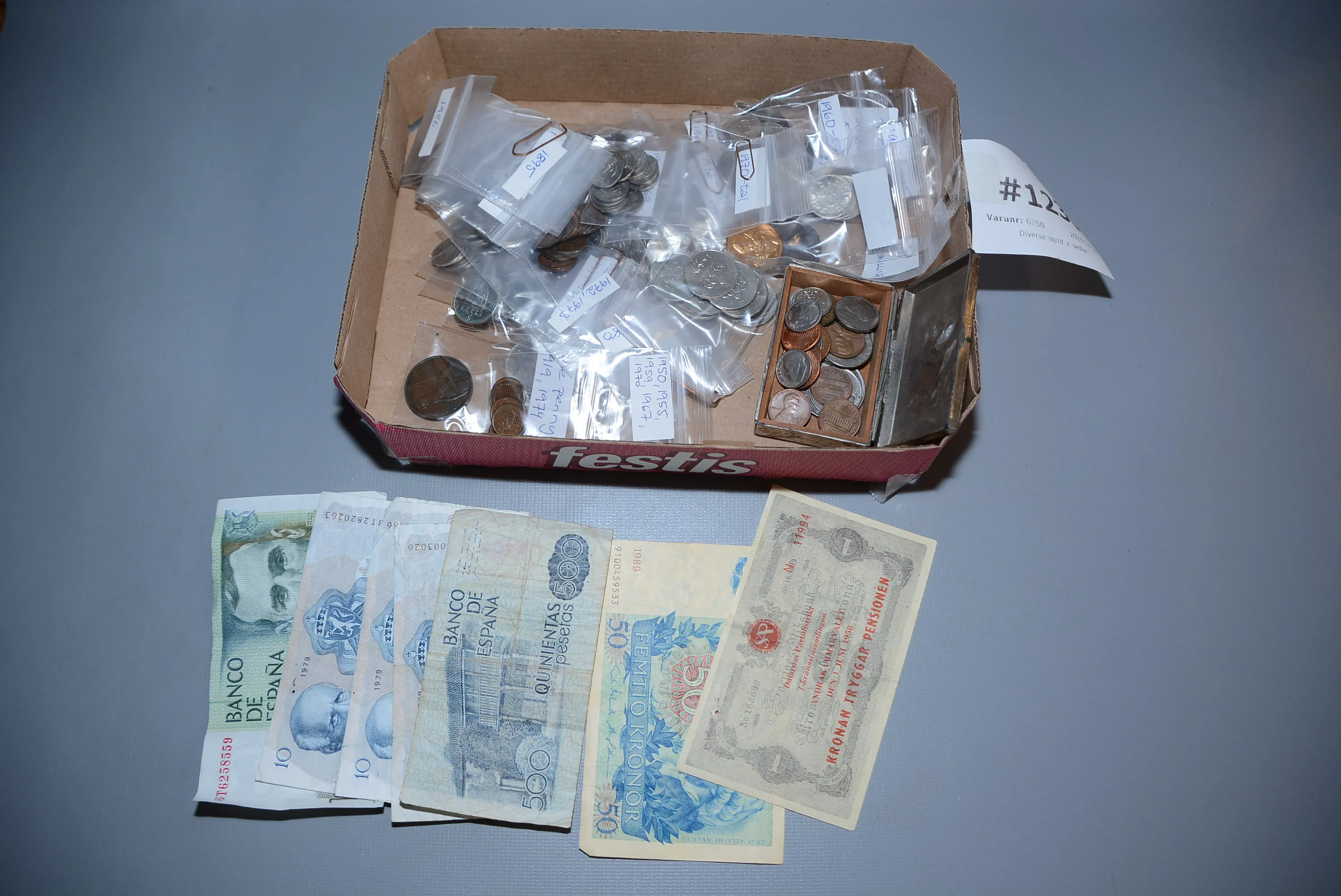 1230. Diverse mynt + sedlar