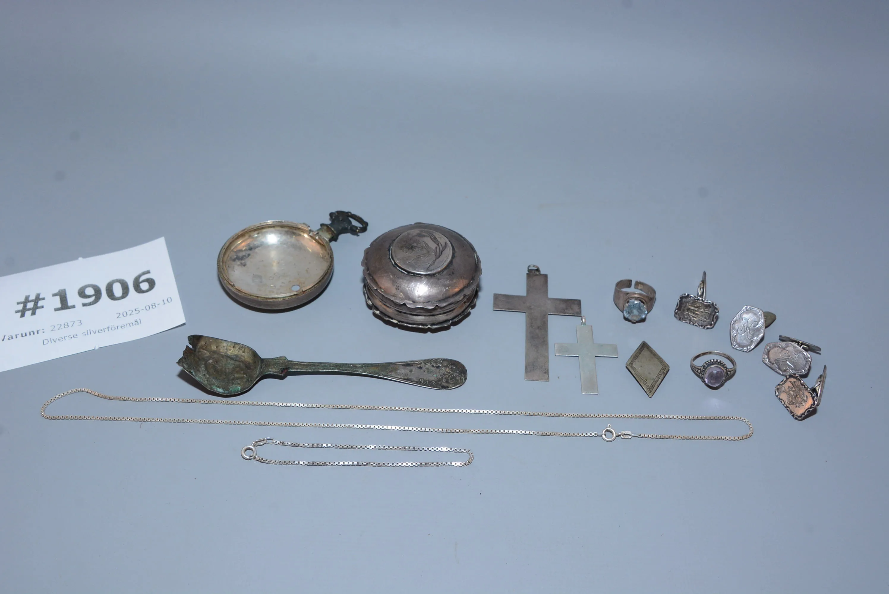 1906. Diverse silverföremål