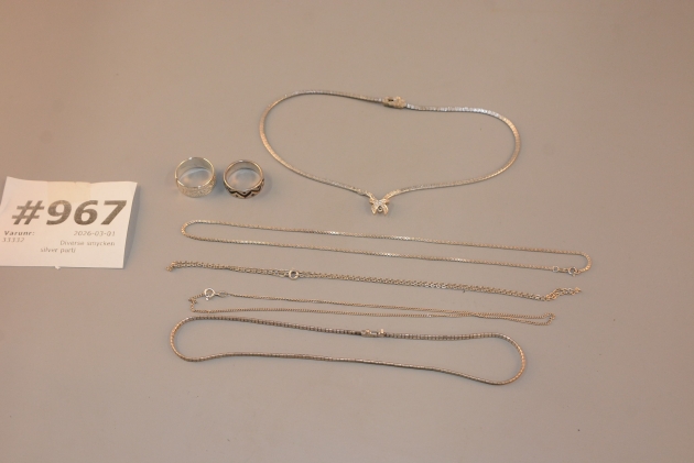 967. Diverse smycken silver parti