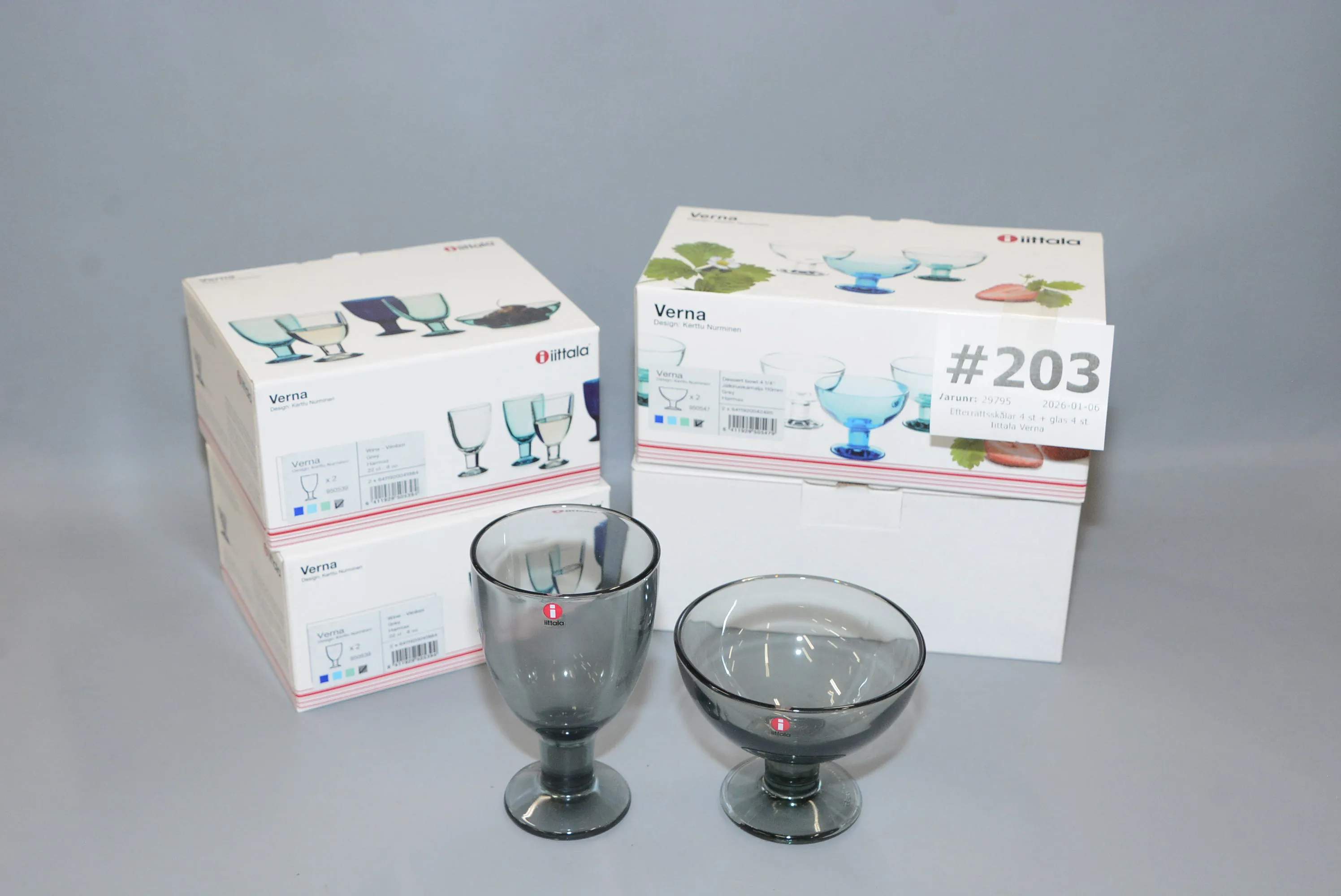 203. Efterrättsskålar 4 st + glas 4 st "Verna" Iittala