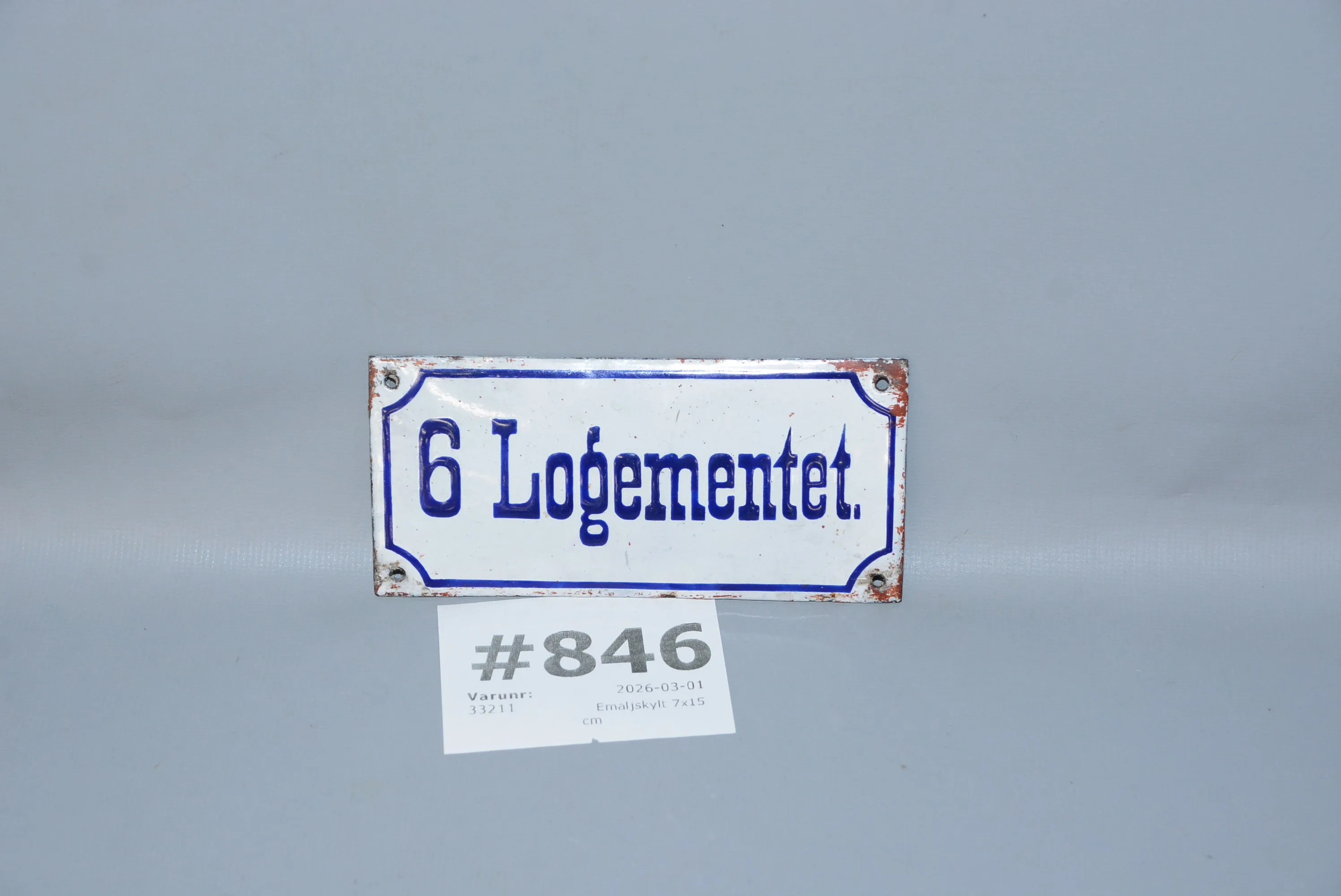 846. Emaljskylt 7x15 cm