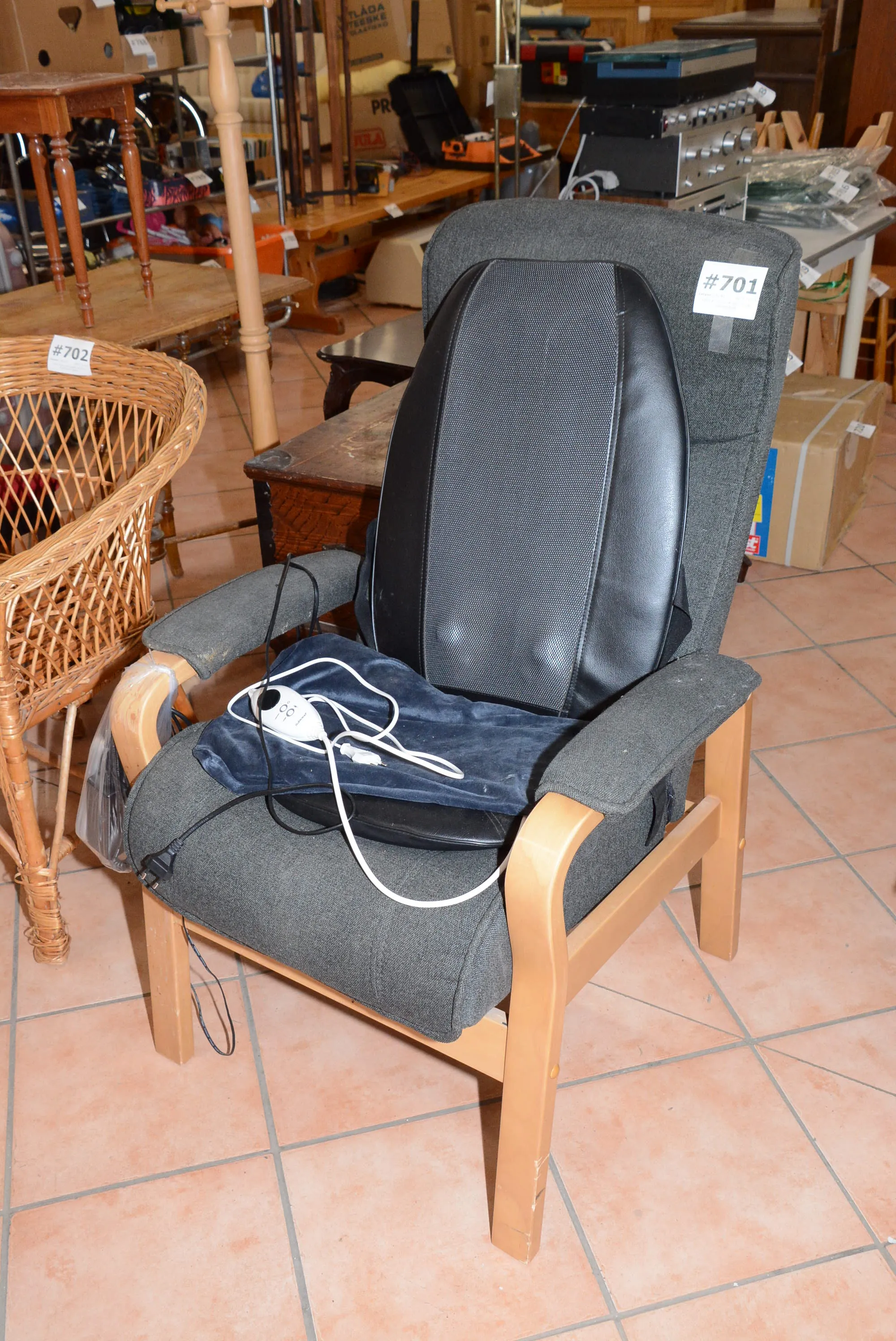701. Fåtölj B: 70 cm, H: 105 cm inkl massagedyna