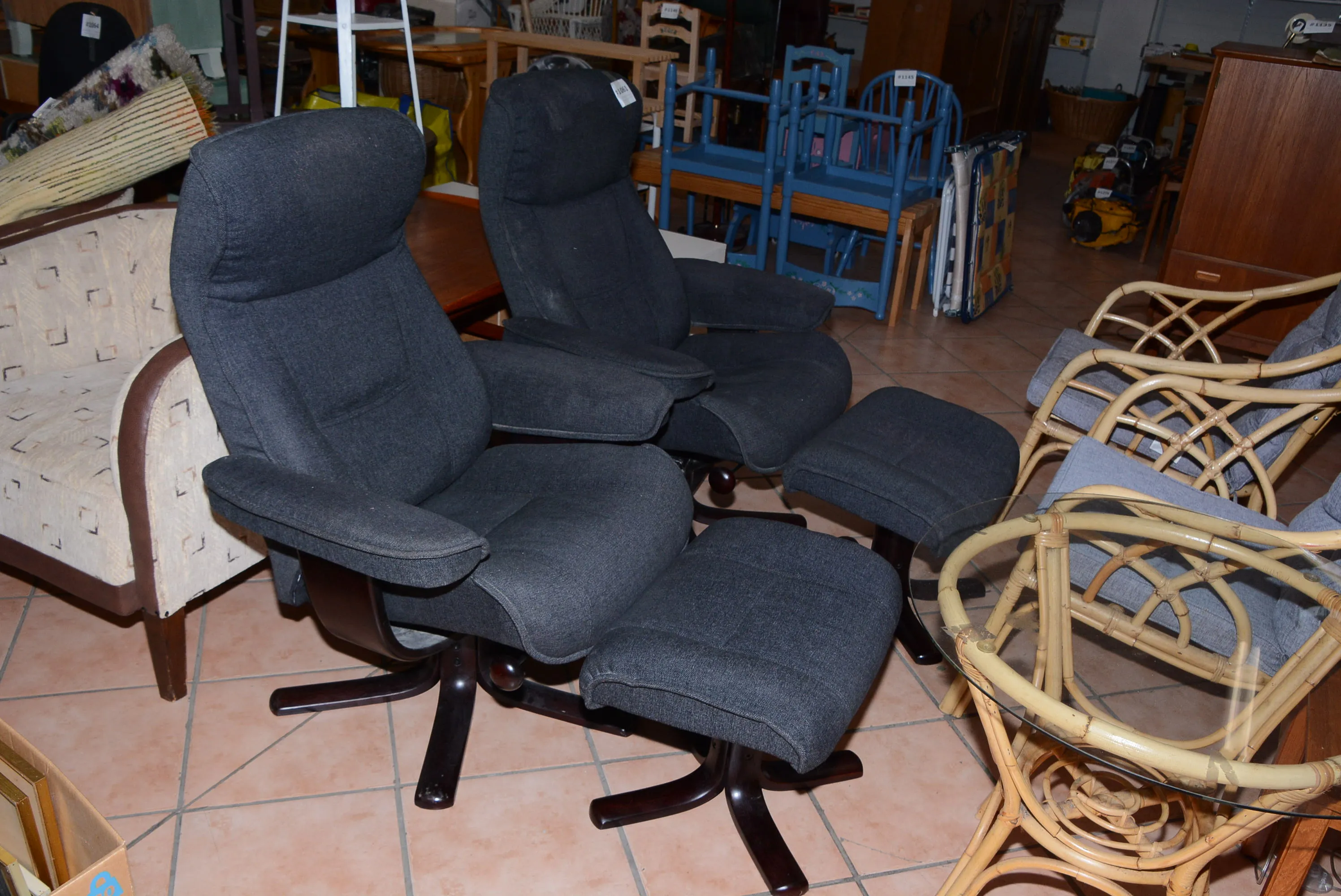 1061. Fåtöljer 2 st inkl fotpallar B: 78 cm, H: 100 cm