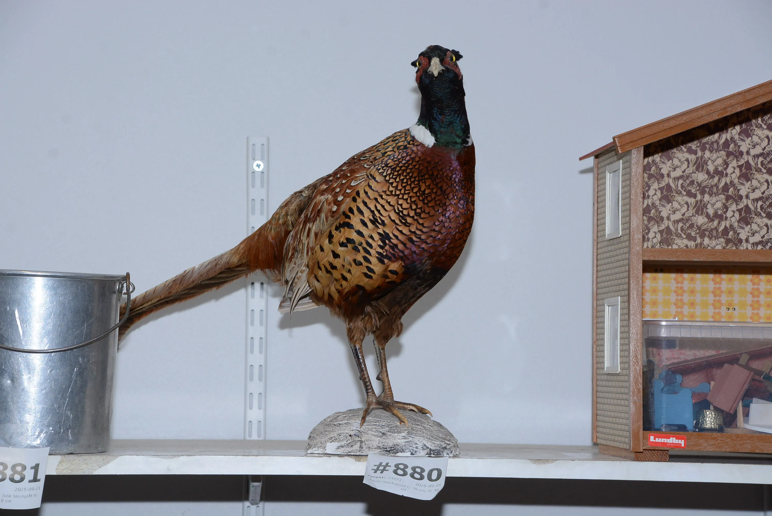 880. Fasan uppstoppad L: 70 cm, H: 40 cm