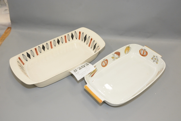 203. Fat 2 st "Frati" Rörstrand L: 35 cm, Egersund L: 38 cm