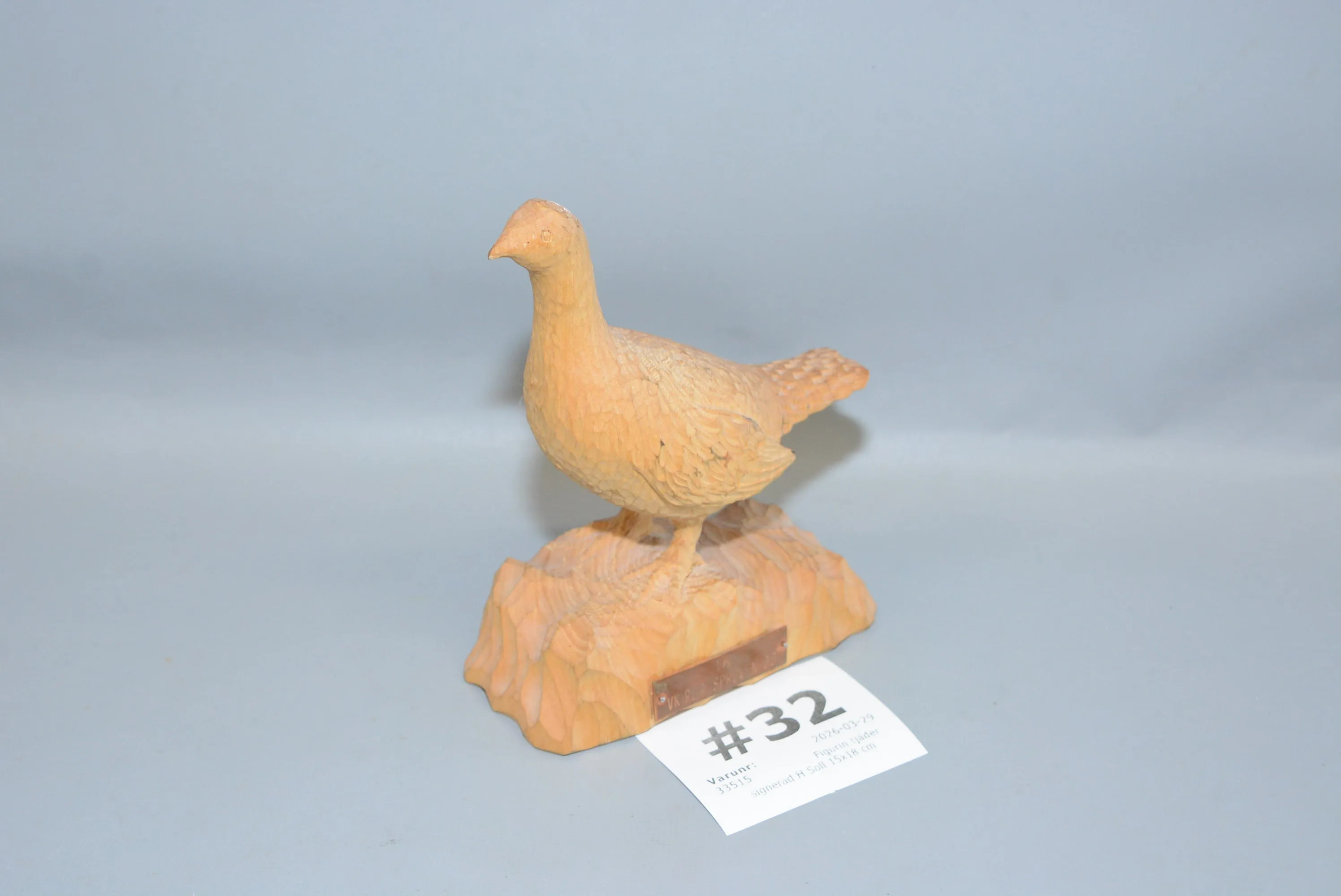 32. Figurin tjäder signerad H Soll 15x18 cm
