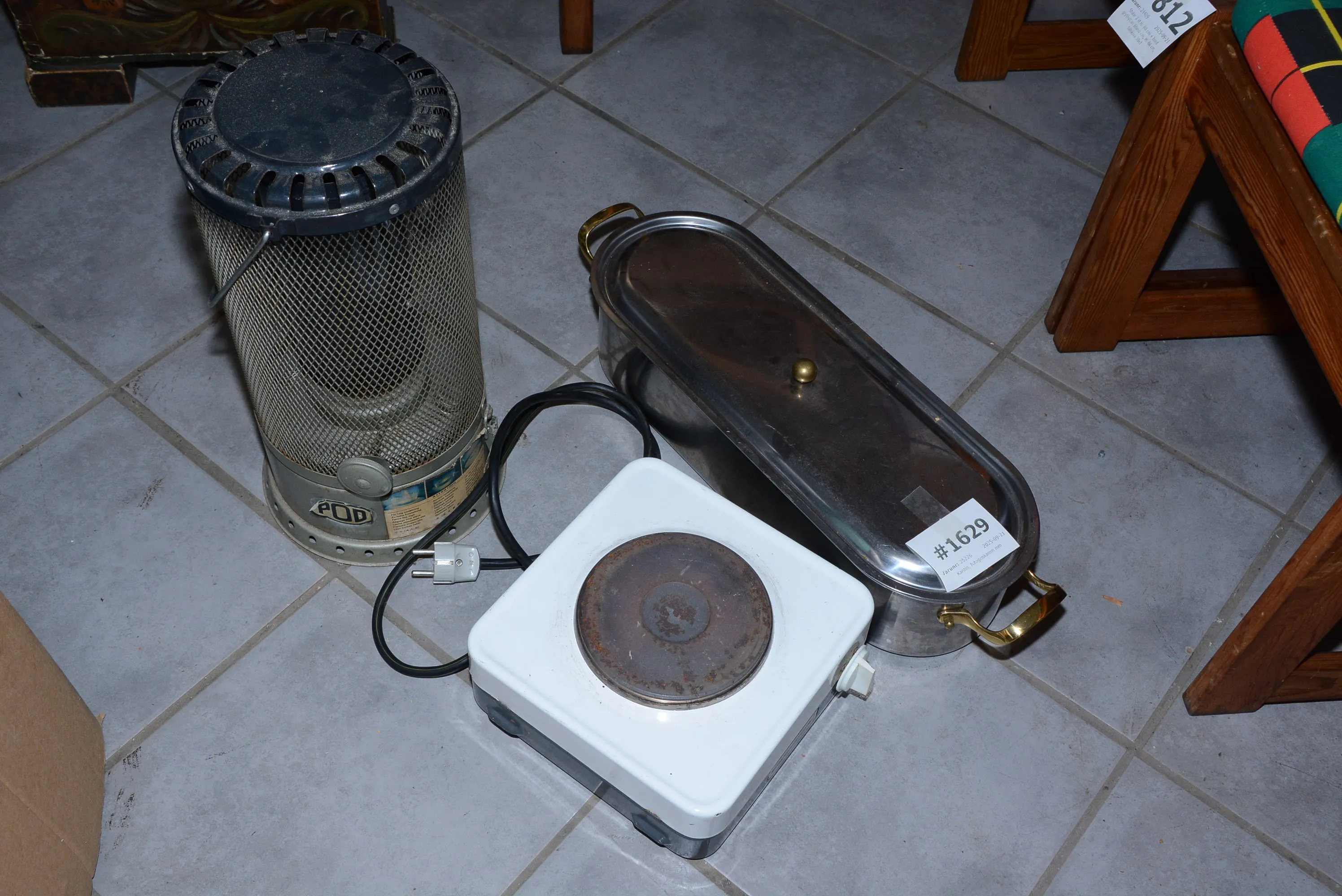 1629. Fiskgryta, fotogenkamin mm
