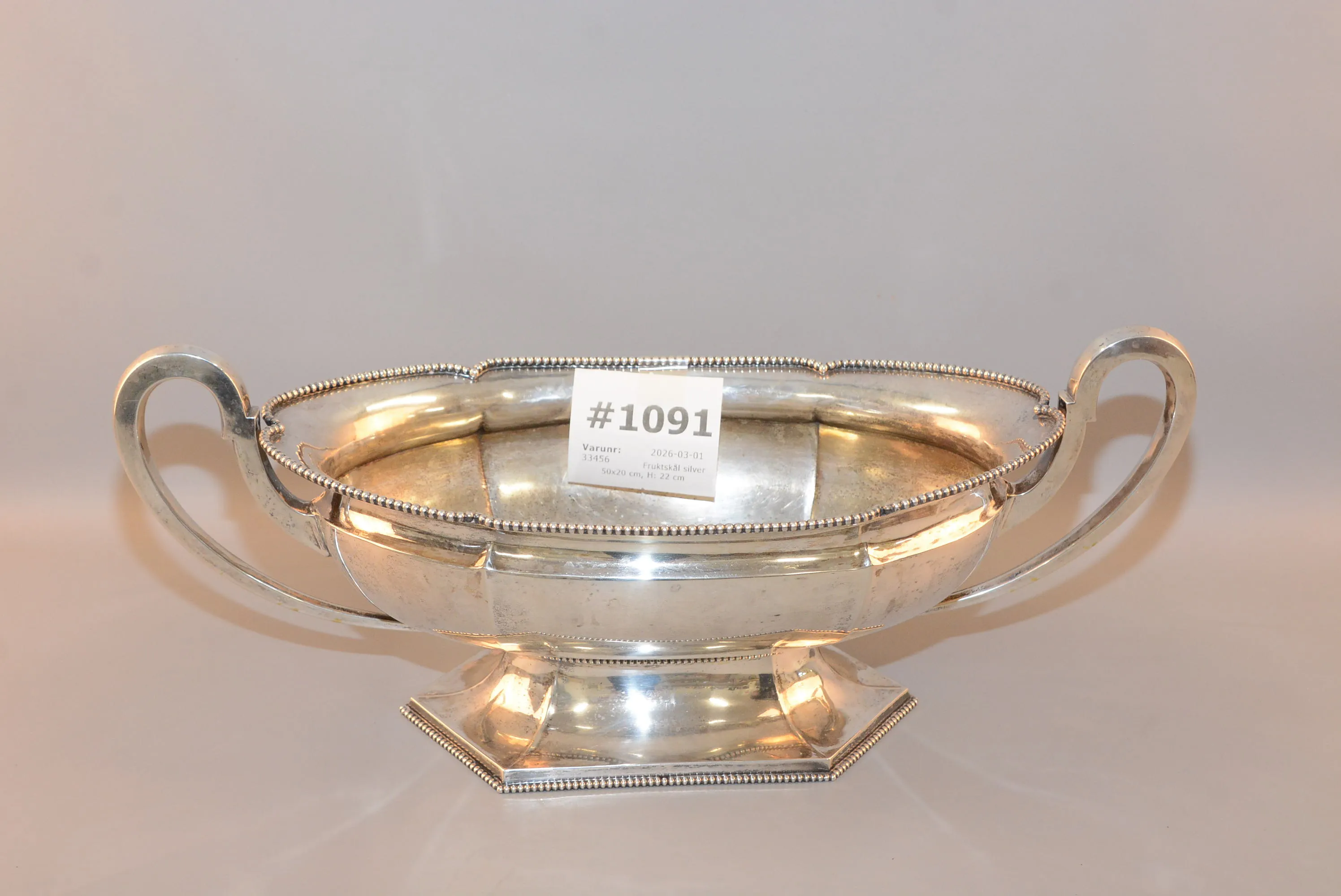 1091. Fruktskål silver 50x20 cm, H: 22 cm