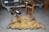 1608. Fårskinn färgat, kandelaber + tomtelykta