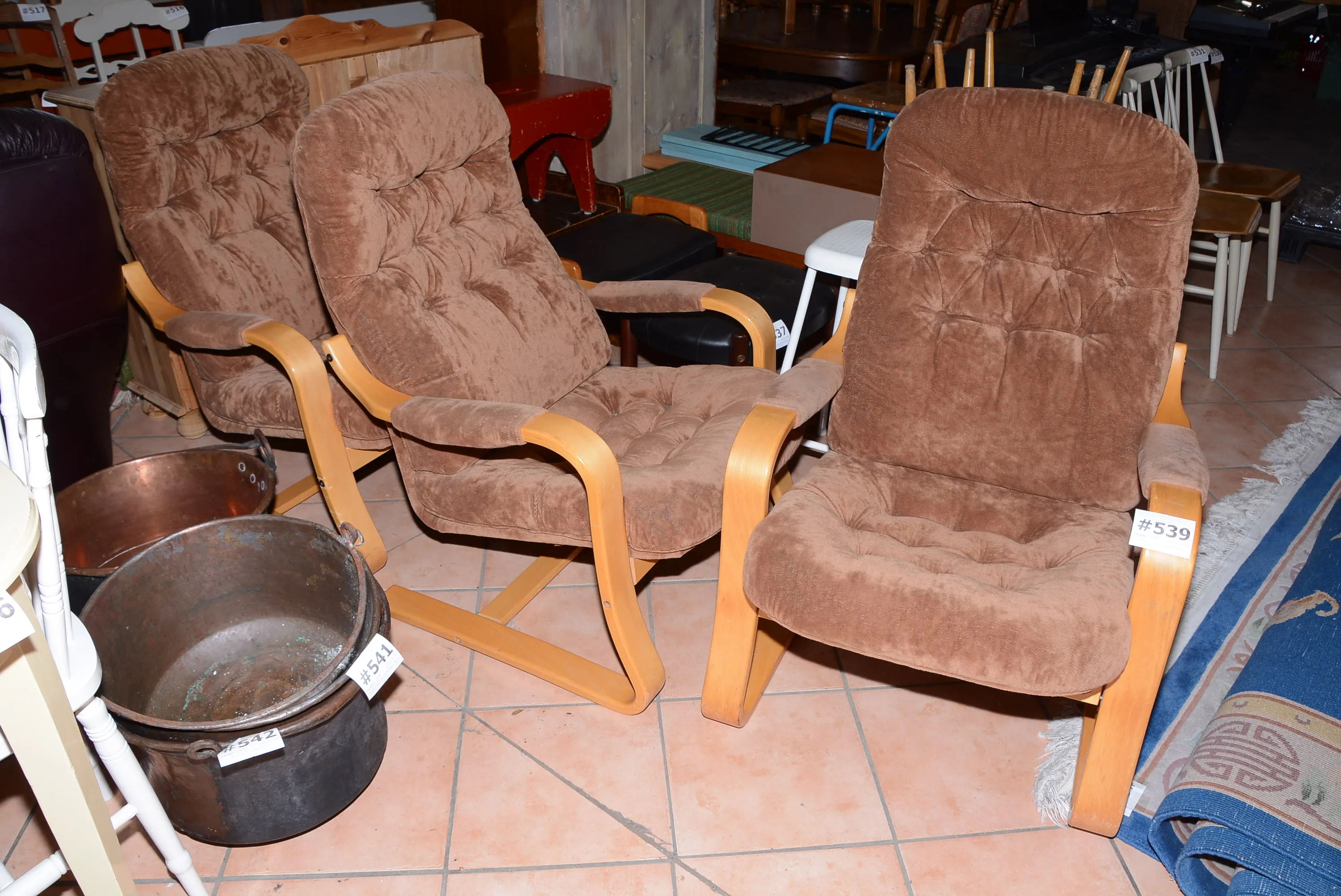 539. Fåtöljer 3 st B: 67 cm, H: 90 cm