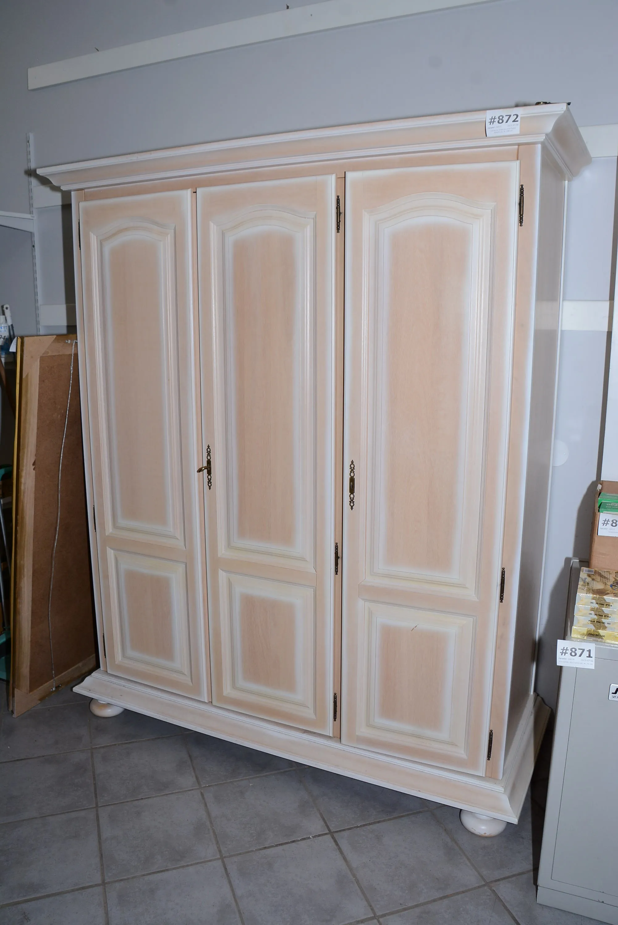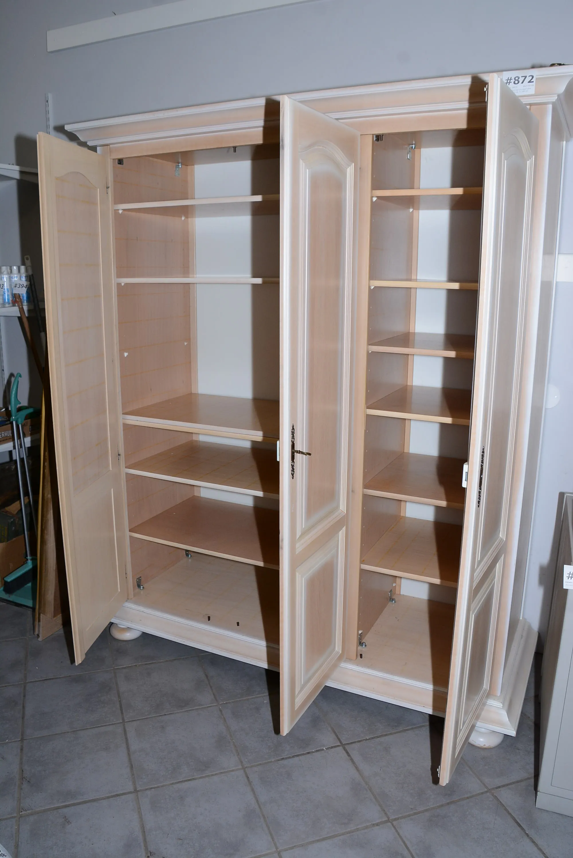 872. Garderob 3-dörrars med hyllor 160x63 cm, H: 190 cm