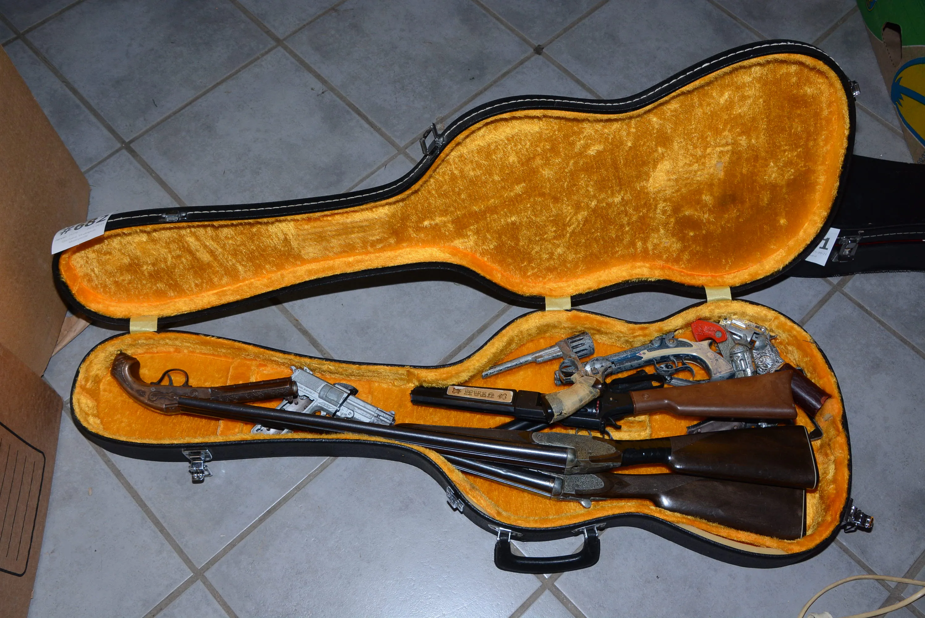 682. Gitarrfodral, leksaksgevär, leksakspistoler