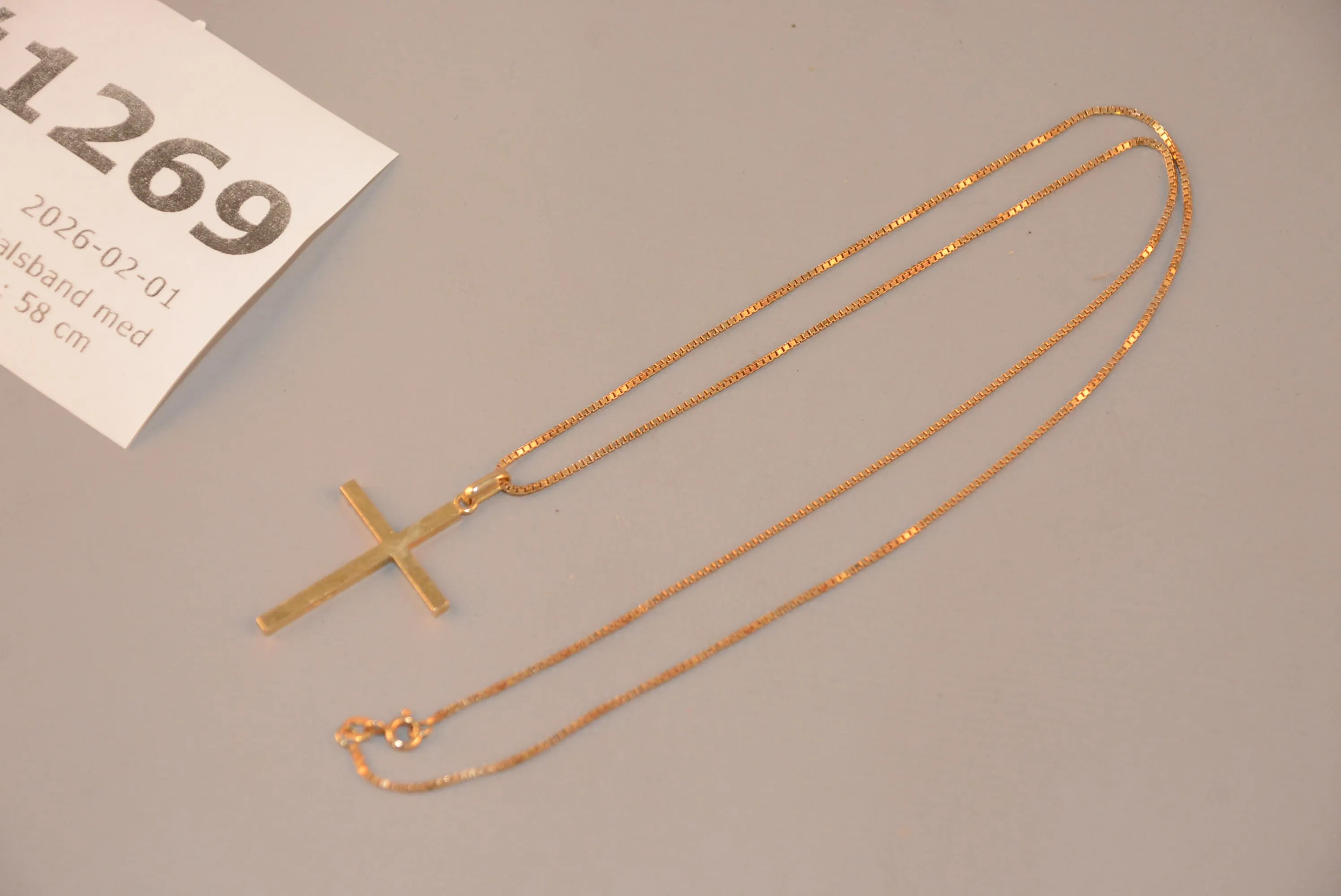 1269. Halsband med kors guld 18k L: 58 cm
