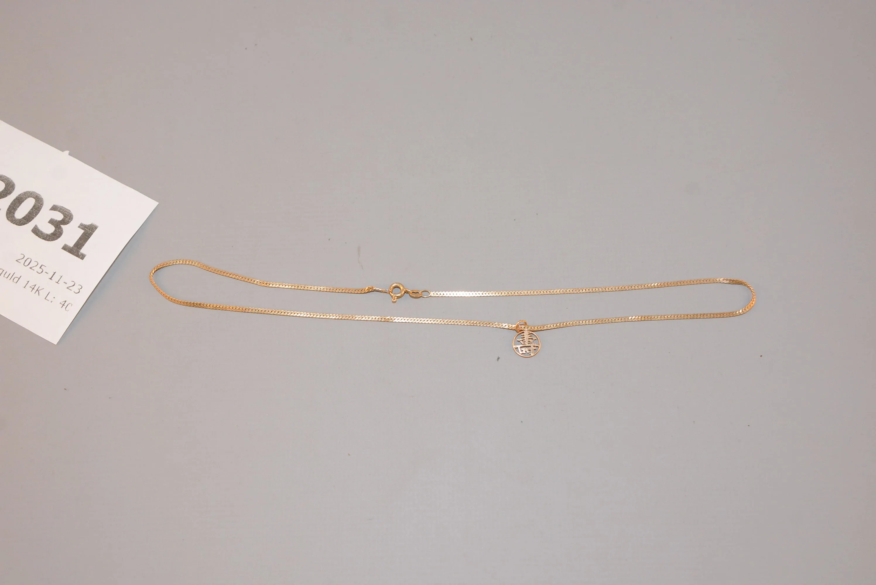 2031. Halskedja med hänge guld 14K L: 40 cm