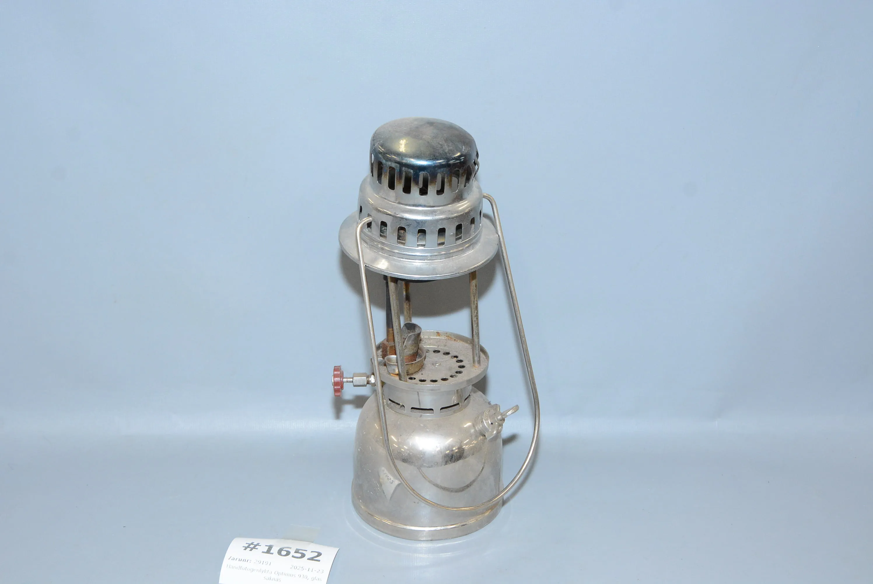 1652. Handfotogenlykta Optimus 930, glas saknas