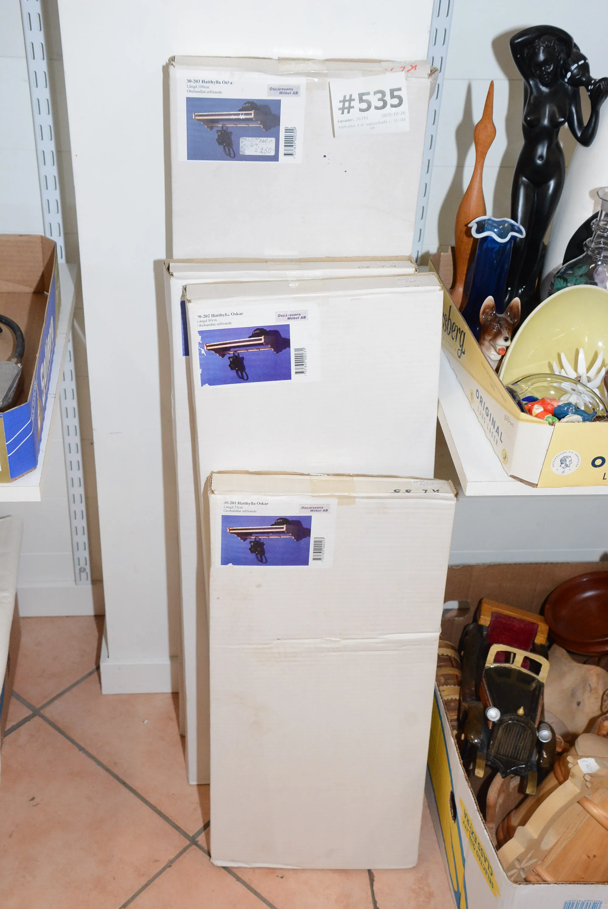 535. Hatthyllor 4 st ouppackade L: 55-100 cm