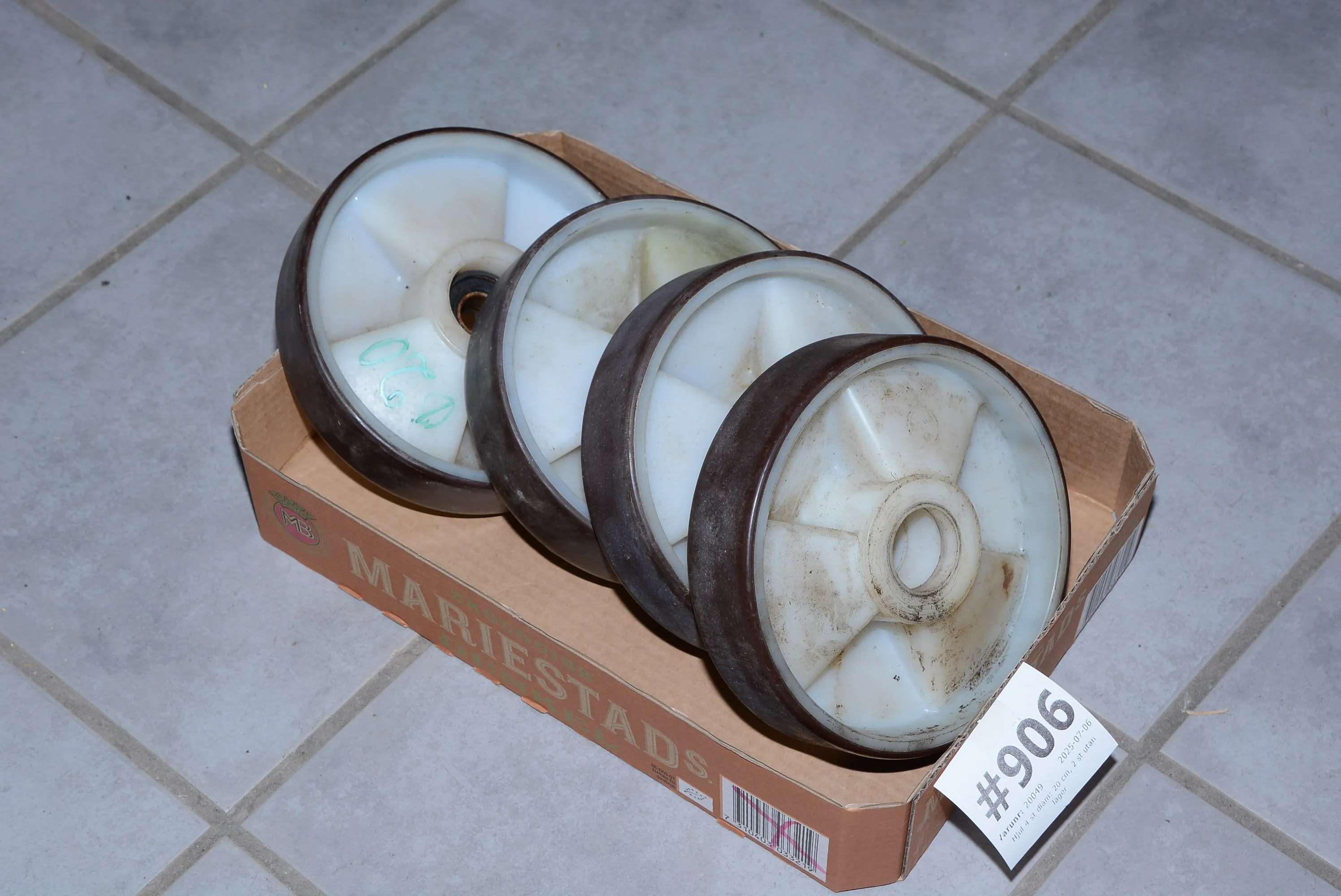 906. Hjul 4 st diam: 20 cm, 2 st utan lager