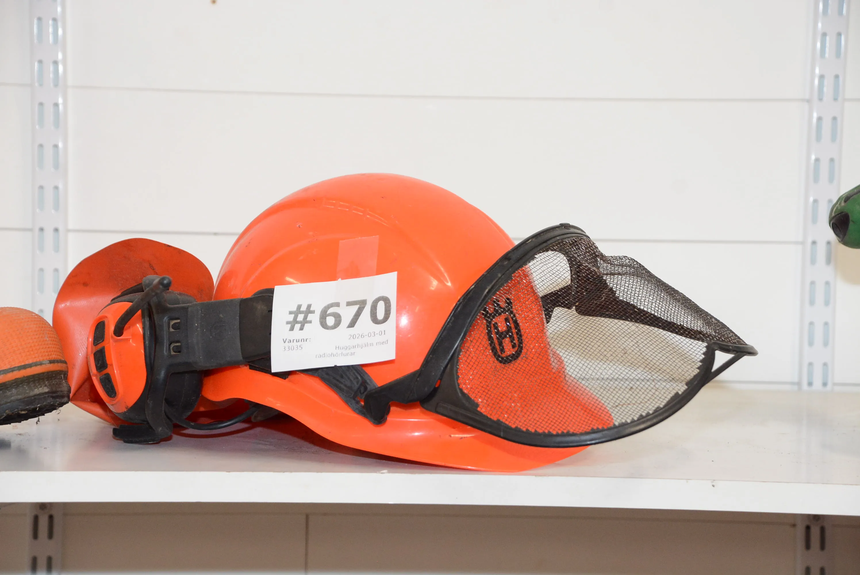 670. Huggarhjälm med radiohörlurar