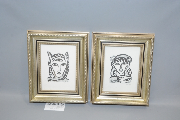 415. Inramade tryck 2 st Ulrica Hydman Vallien 19x13 cm