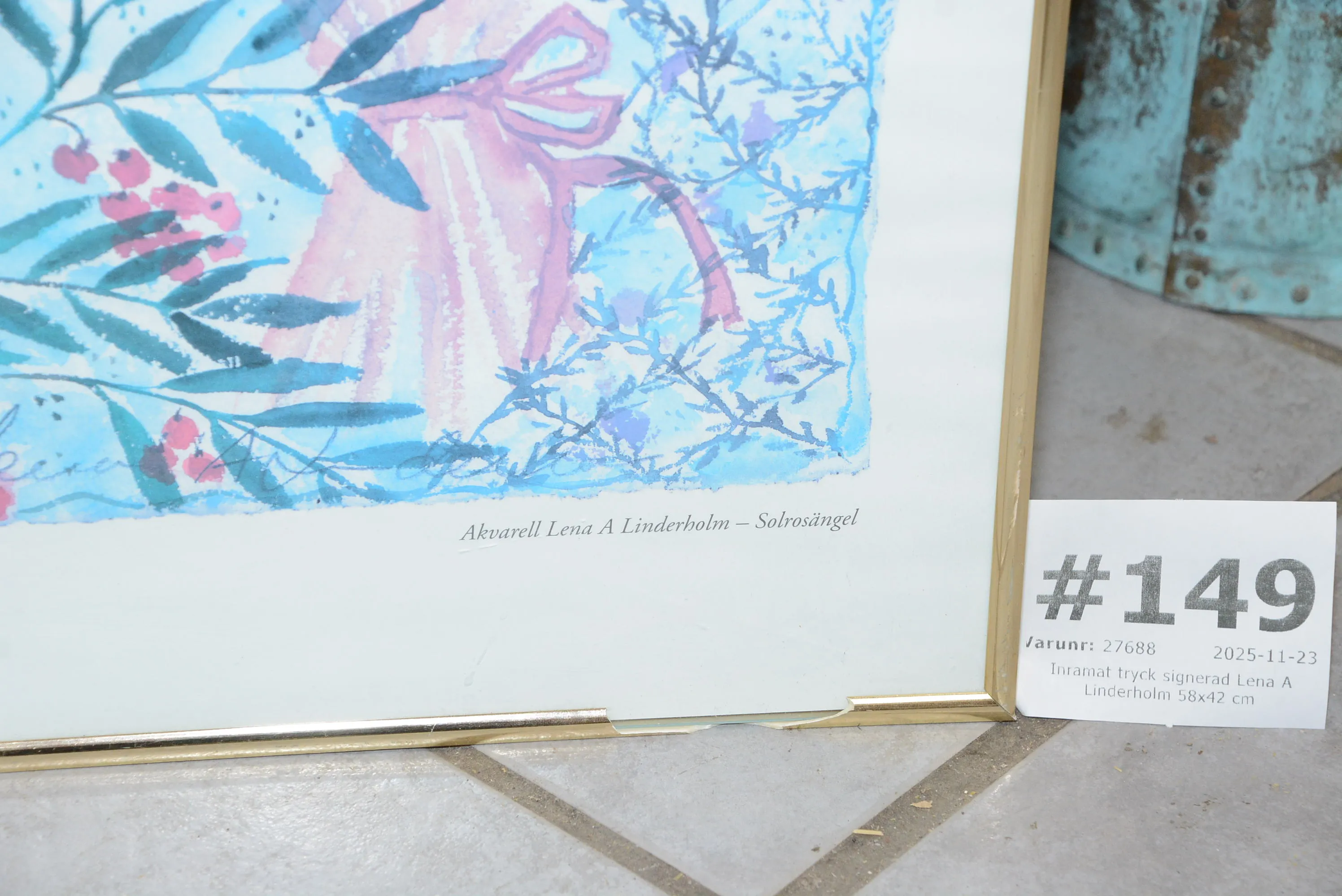 149. Inramat tryck signerat Lena A Linderholm 58x42 cm