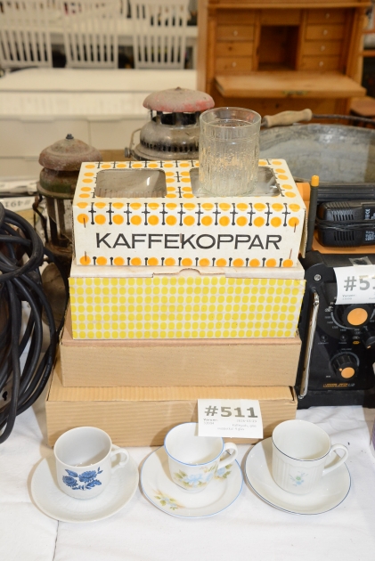 511. Kaffegods, glas ouppackat, 4 lådor