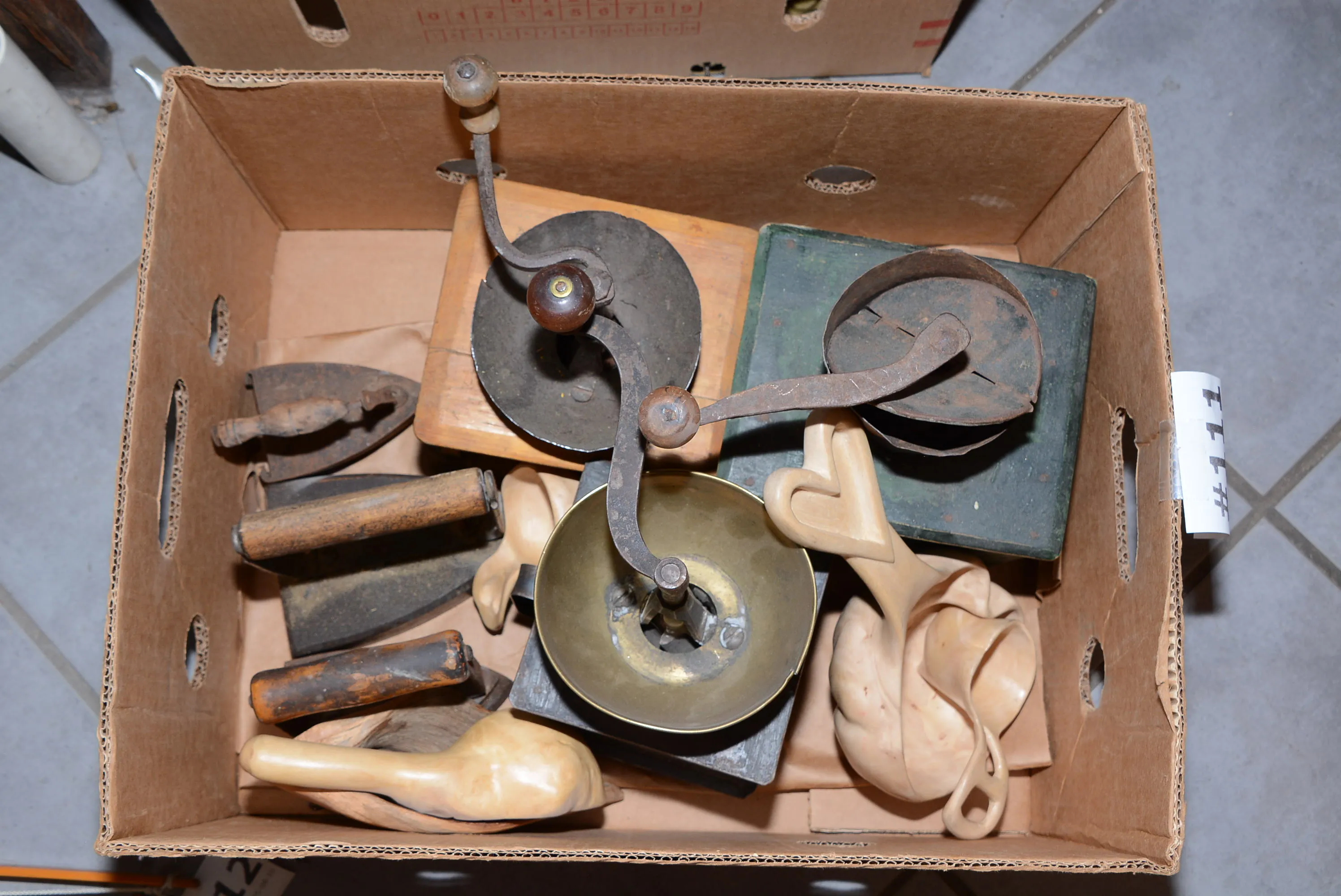 111. Kaffekvarn, strykjärn mm