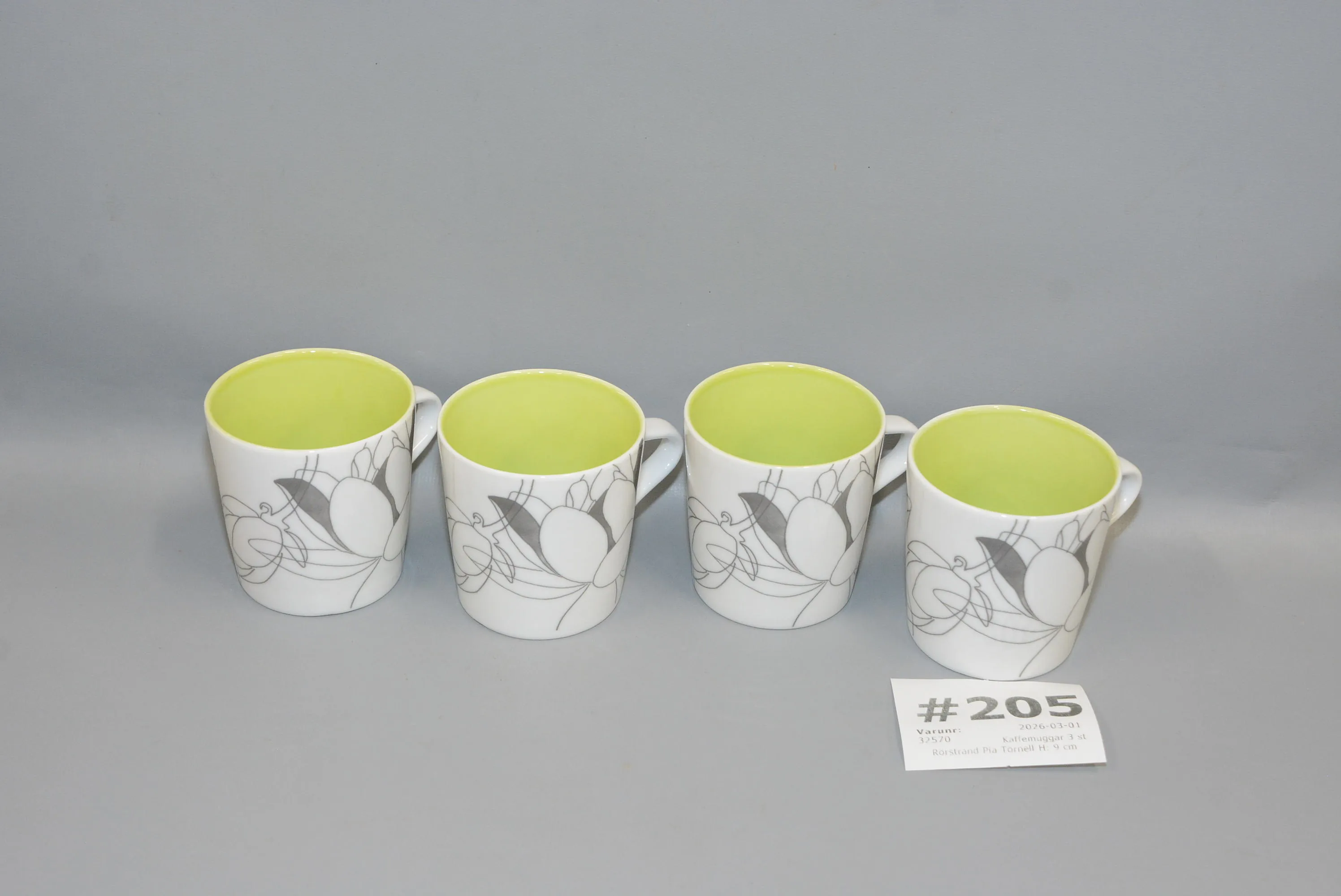 205. Kaffemuggar 3 st Pia Törnell/ Rörstrand H: 9 cm