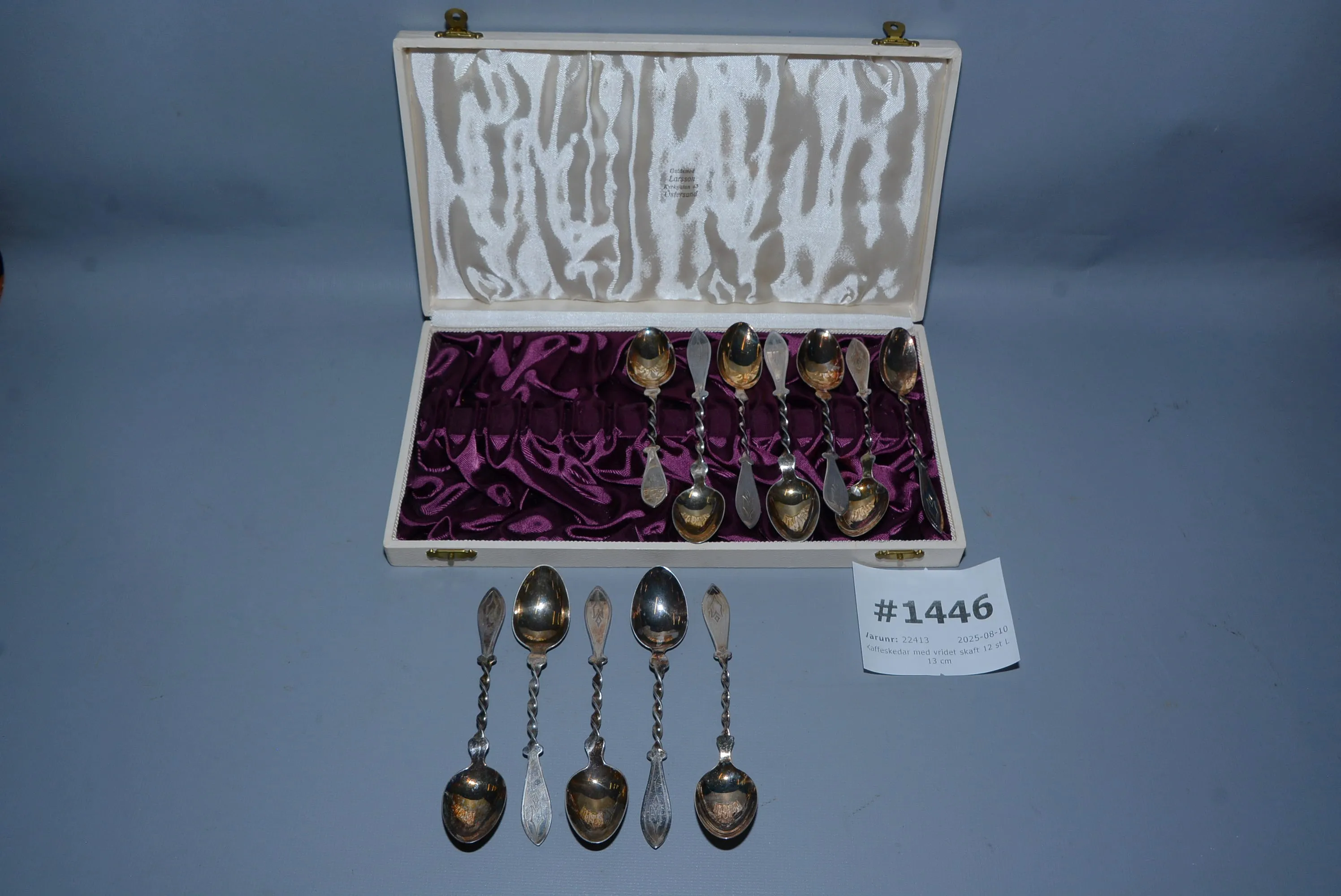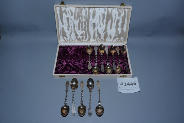 1446. Kaffeskedar med vridet skaft silver 12 st L: 13 cm