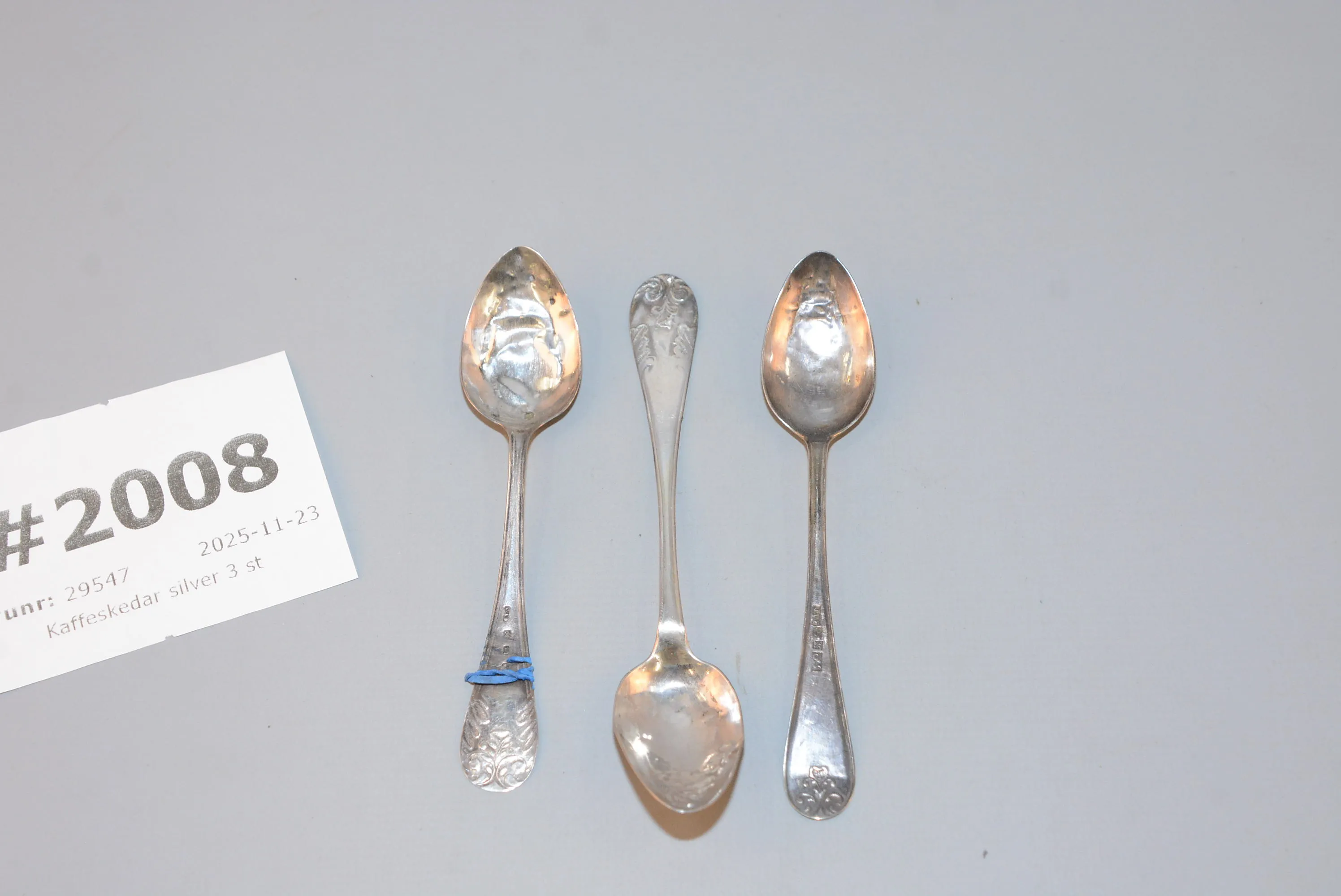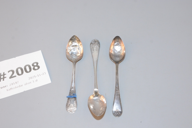 2008. Kaffeskedar silver 3 st