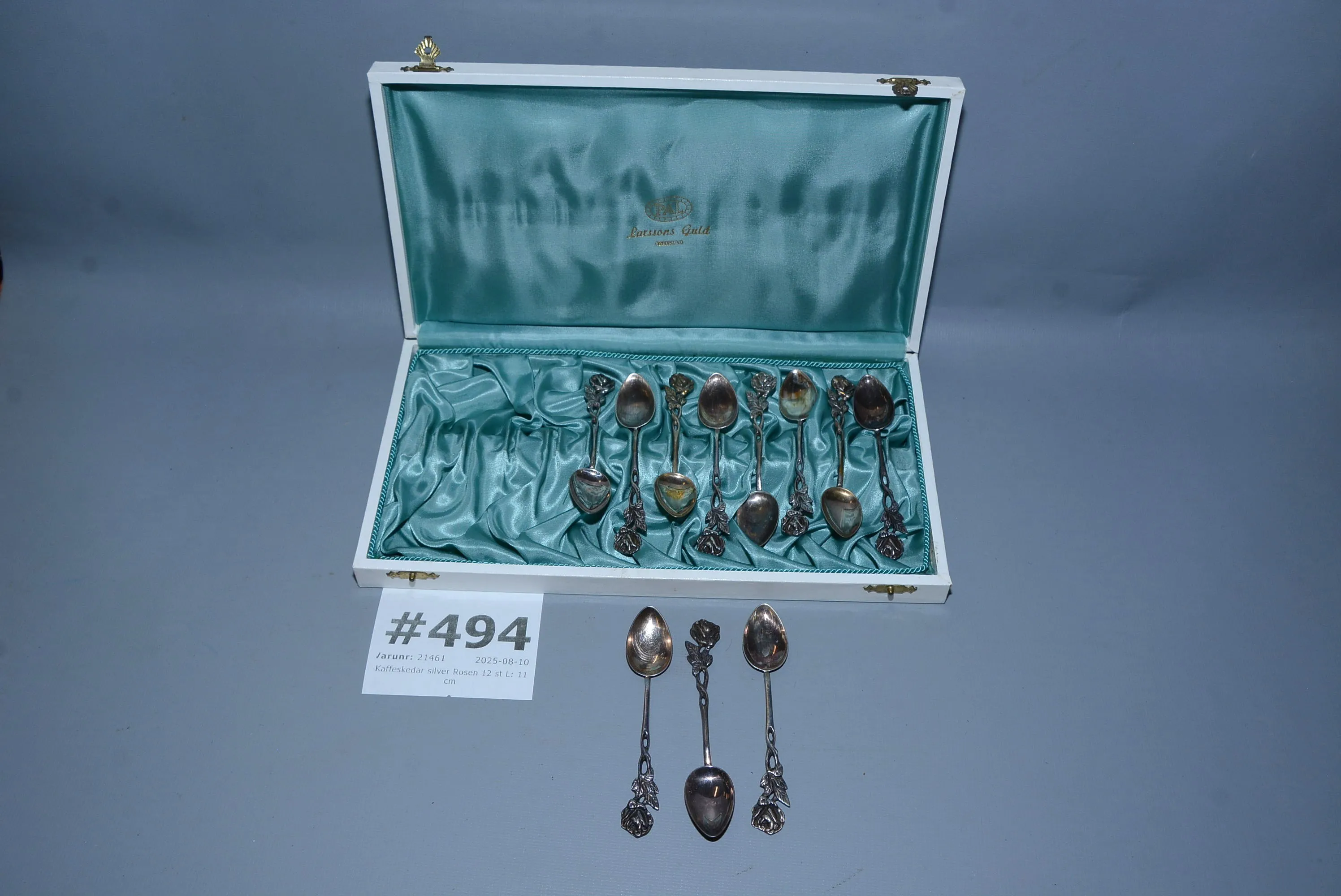 494. Kaffeskedar silver Rosen 11 st L: 11 cm