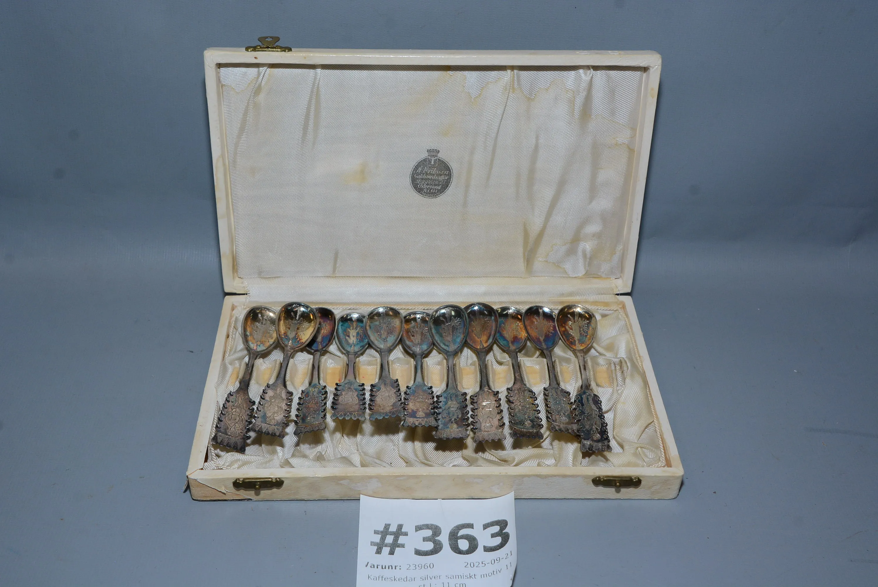 363. Kaffeskedar silver samiskt motiv 11 st L: 11 cm