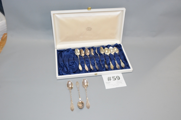 59. Kaffeskedar vridet skaft silver 12 st L: 12 st inkl schatull