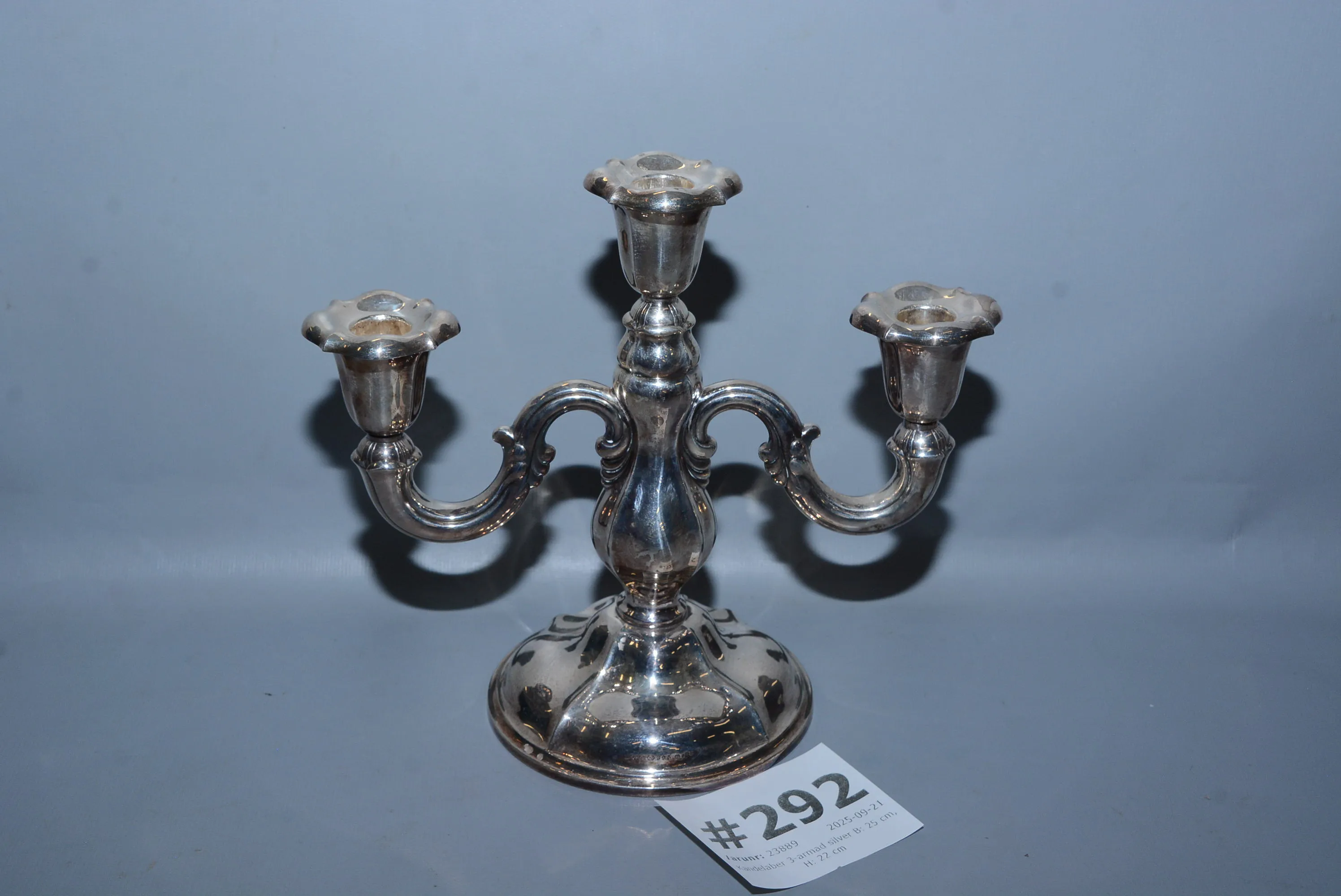 292. Kandelaber 3-armad silver B: 25 cm, H: 22 cm