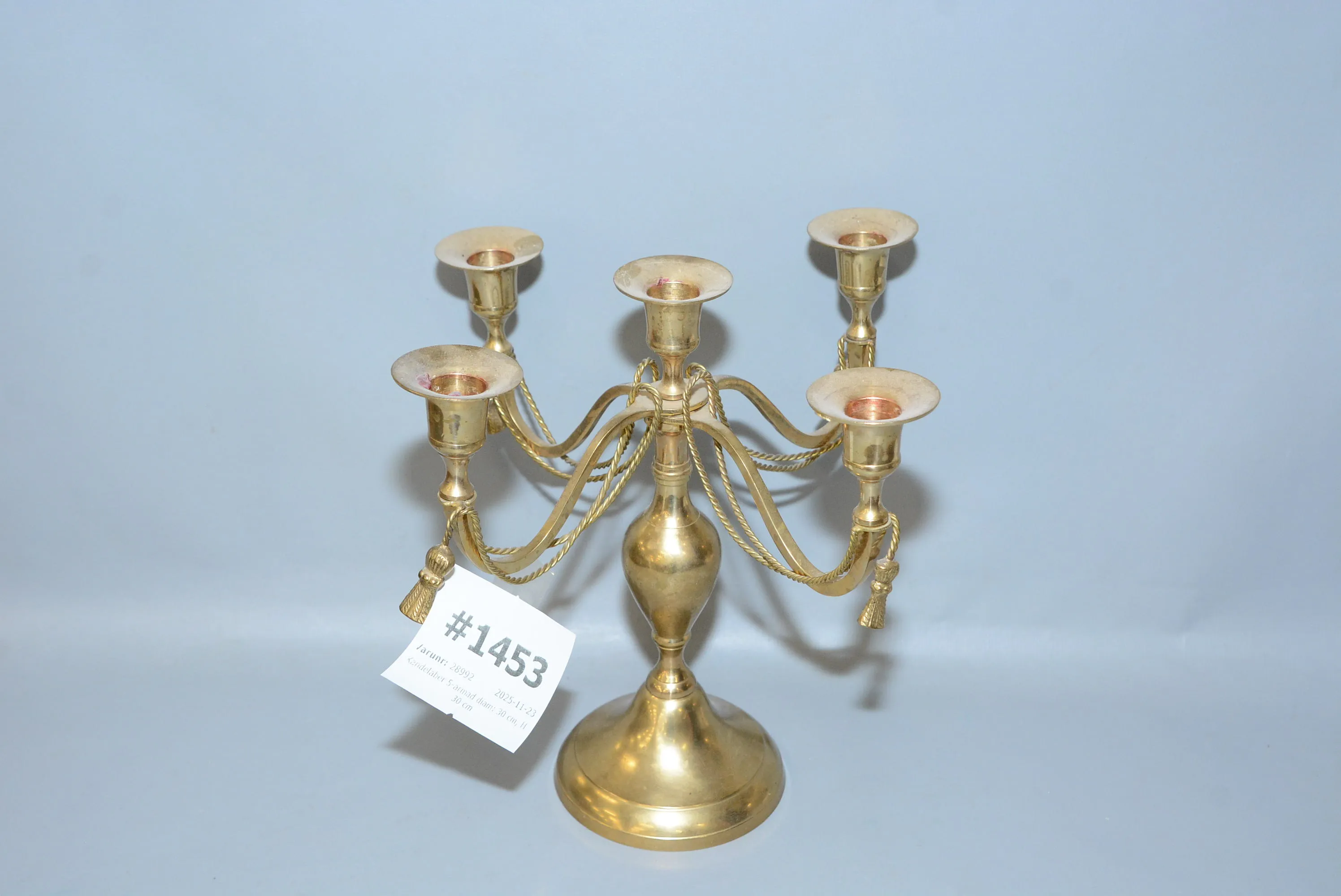 1453. Kandelaber 5-armad diam: 30 cm, H: 30 cm